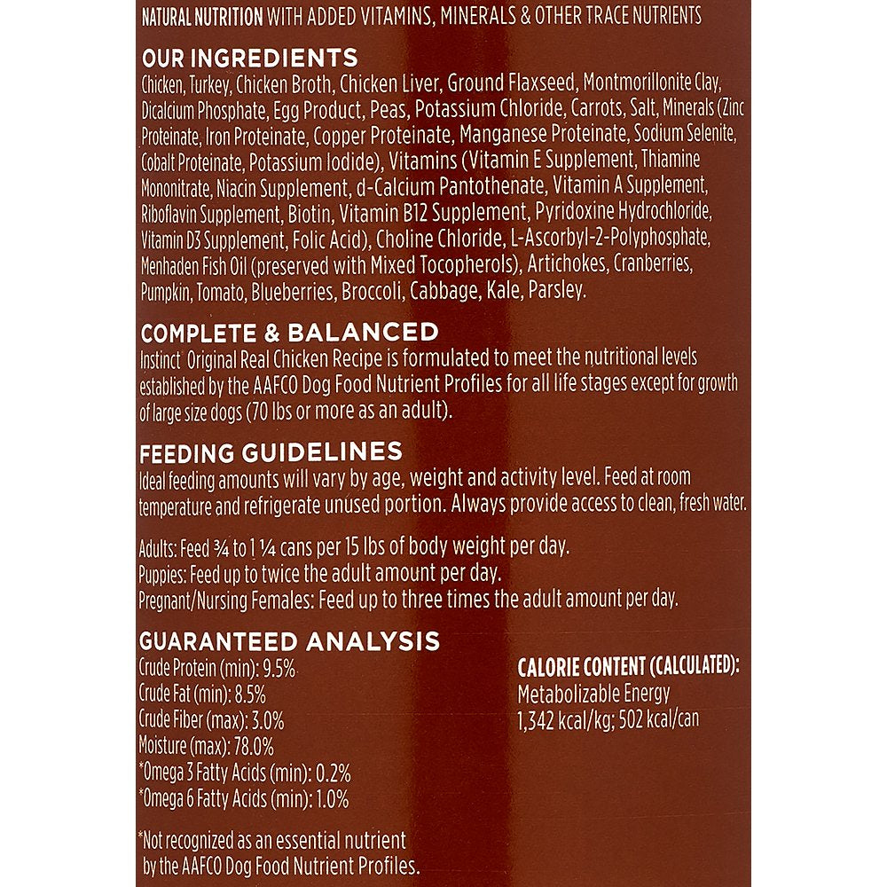 Instinct Original Grain Free Real Chicken Recipe Natural Wet Canned Dog Food by Nature'S Variety, 13.2 Oz. Cans is backordered and will ship as soon as it is back in stock.