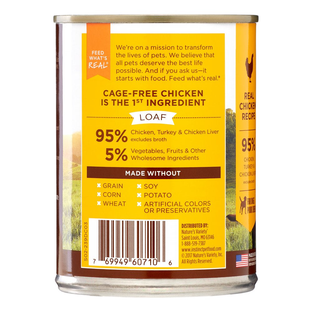 Instinct Original Grain Free Real Chicken Recipe Natural Wet Canned Dog Food by Nature'S Variety, 13.2 Oz. Cans