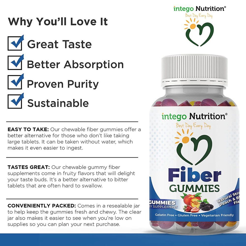 Keep your digestive system in check with these Intego Nutrition Dietary Fiber Supplement Gummies!