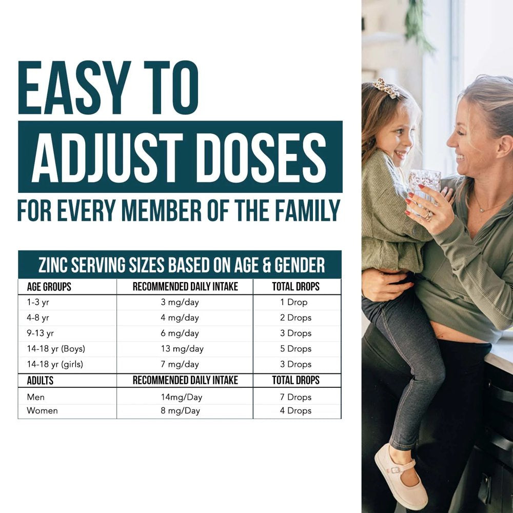 - ZINC FOR ENTIRE FAMILY: Our Liquid Zinc allows you to easily adjust dosage sizes for all ages - Men, Women, and Children.