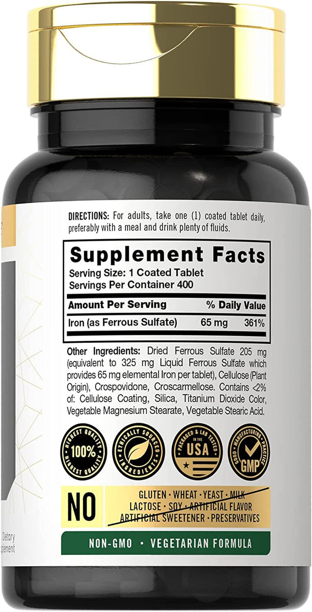 Iron Ferrous Sulfate 65 Mg | 400 Tablets | by Carlyle
