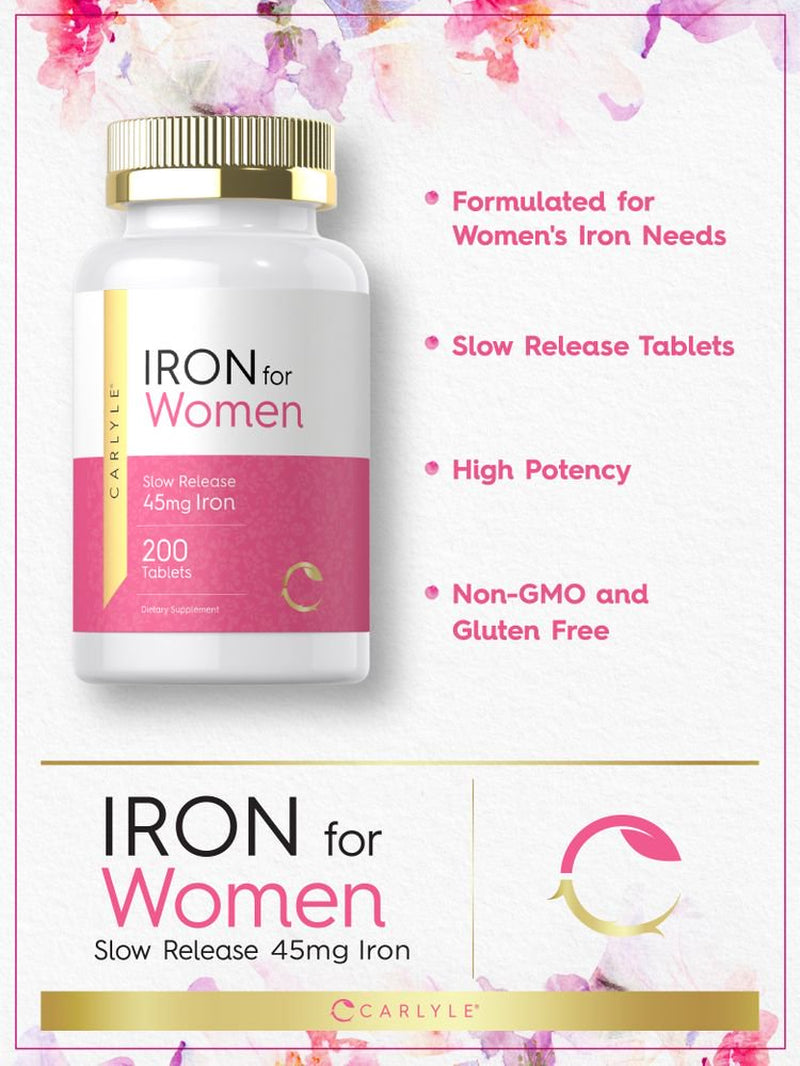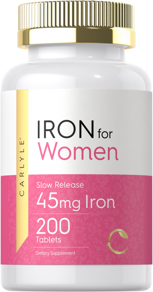 Iron Supplement for Women 45Mg | 200 Tablets | Vegetarian Formula | by Carlyle