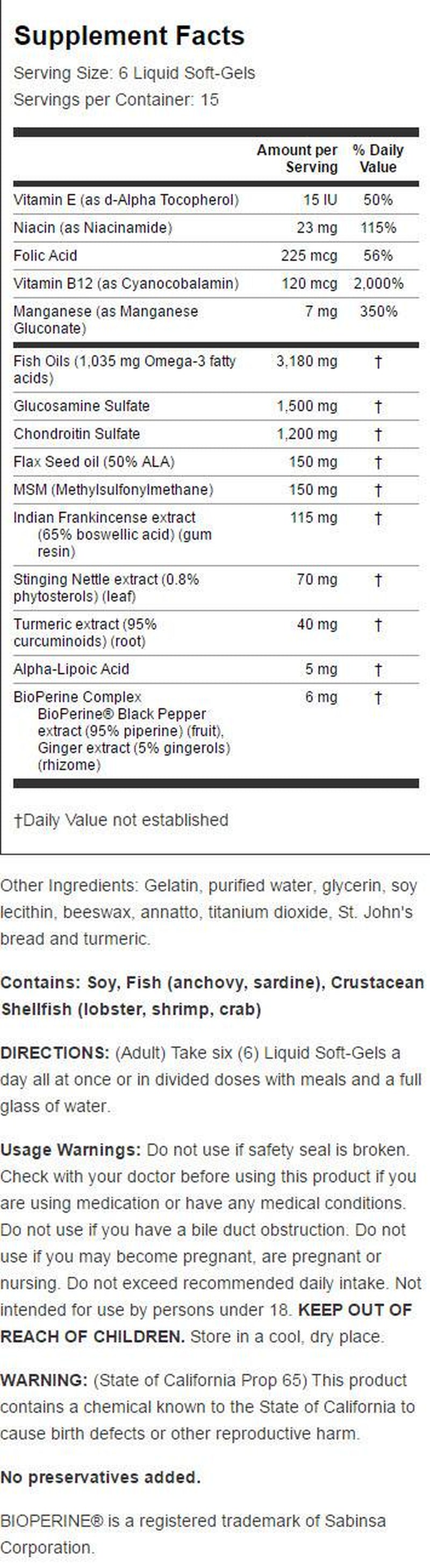 Support joint health with Irwin Naturals 3-in-1 Joint Formula. This supplement also helps to promote healthy tissues with an advanced combination of Glucosamine, Chondroitin, MSM, Omega-3s and botanical extracts.