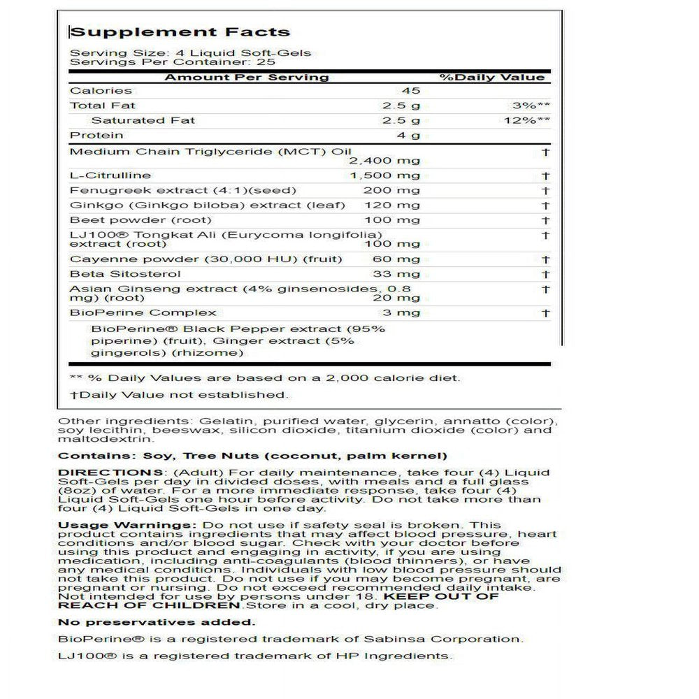 - Includes L-citrulline to promote testosterone and healthy blood flow