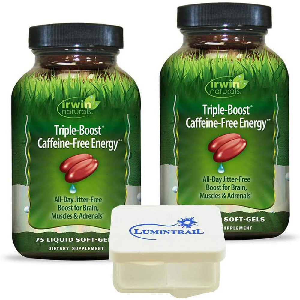 Irwin Naturals Triple Boost Caffeine-Free Energy Supplement 75 - Liquid Softgels (2-Pack) Bundle with a Lumintrail Pill Case