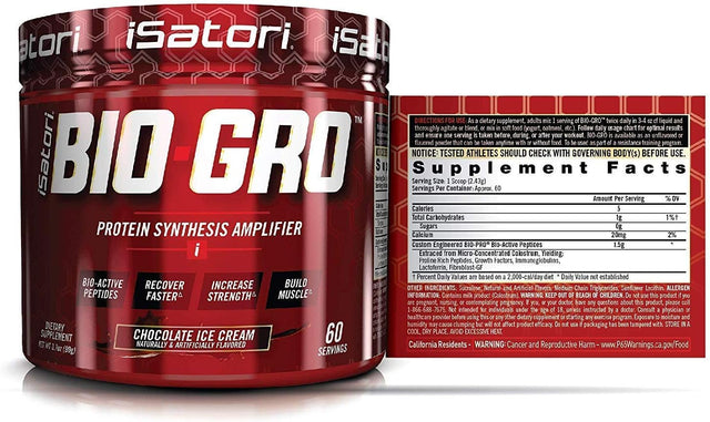 - Maximum Protein Synthesis: BIO-GRO delivers 1.5 grams of Micro-Concentrated Bio-Pro Bio-Active Peptides per serving. Sugar-Free, Gluten-Free, and Stimulant-Free.