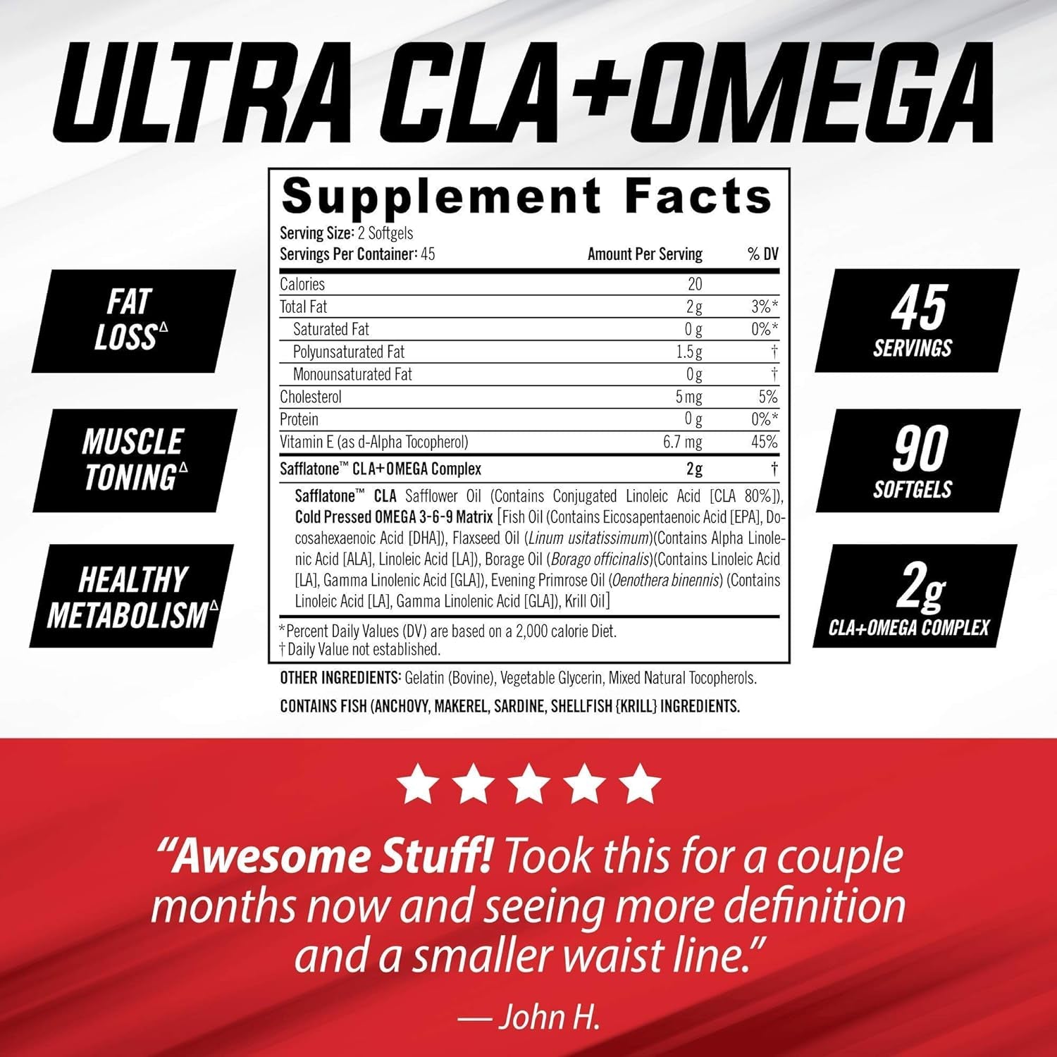 - Advanced Fat Loss: Since ULTRA CLA + OMEGA is not a stimulant-based product, you will not feel any immediate energy and focus from it. When combined with a proper nutrition and training program, ULTRA CLA + OMEGA will speed and support your overall weight loss, muscle maintenance and overall health results.