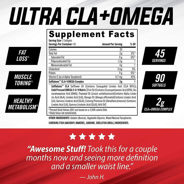 - Advanced Fat Loss: Since ULTRA CLA + OMEGA is not a stimulant-based product, you will not feel any immediate energy and focus from it. When combined with a proper nutrition and training program, ULTRA CLA + OMEGA will speed and support your overall weight loss, muscle maintenance and overall health results.