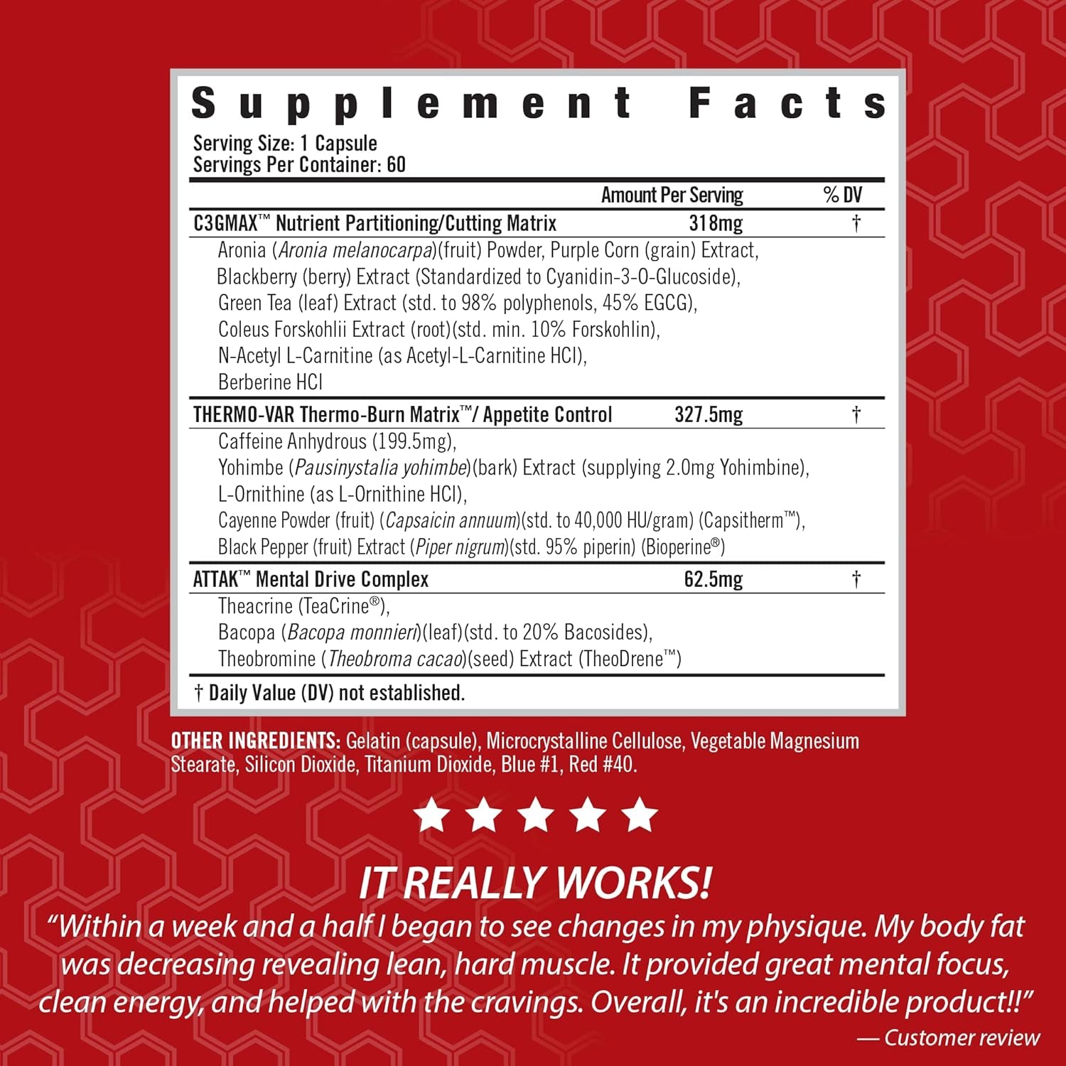 - Sustained Energy: LIPO-DREX delivers sustained and smooth energy via the THERMO-VAR Thermo-Burn Matrix with ingredients like caffeine and Yohimbe. This works in combination with the ATTAK Mental Drive Complex that includes industry-leading ingredients like TeaCrine and Theobromine to give you an energetic, high-focus feeling.