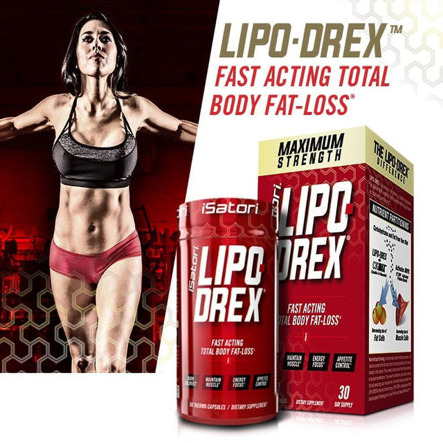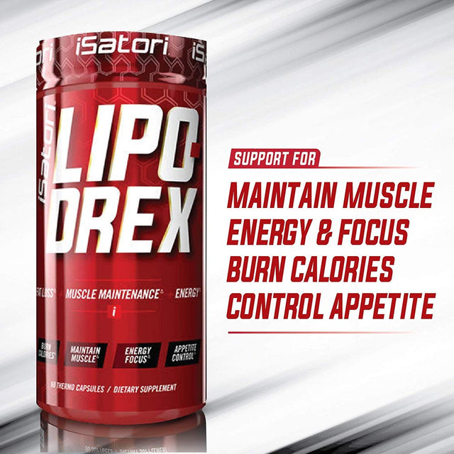 Isatori | Lipo-Drex - Fat Loss Thermogenic Formula, Focus Blend, Fast-Acting Total Body Fat Burner, Weight Loss, Muscle Maintenance, Appetite Suppressant, for Men and Women | 60 Capsules