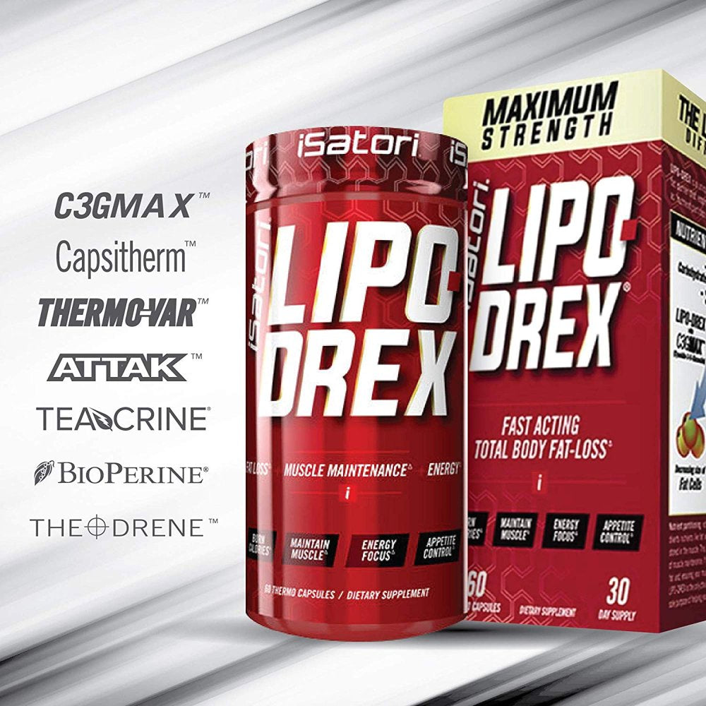 Isatori | Lipo-Drex - Fat Loss Thermogenic Formula, Focus Blend, Fast-Acting Total Body Fat Burner, Weight Loss, Muscle Maintenance, Appetite Suppressant, for Men and Women | 60 Capsules is backordered and will ship as soon as it is back in stock.