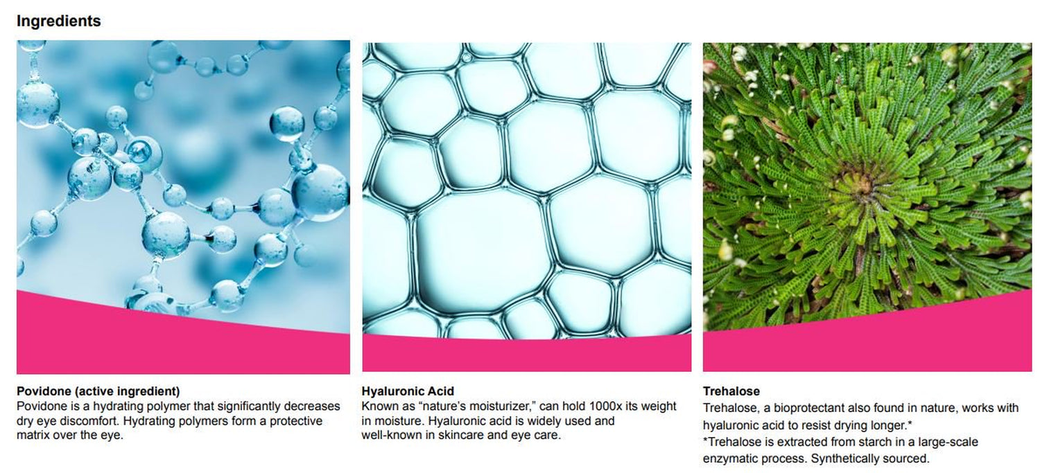 Your dry eyes deserve better. From the makers of the #1 doctor-prescribed dry eye brand in Europe, iVIZIA Sterile Lubricant Eye Drops for Dry Eyes is scientifically formulated to relieve dryness, discomfort, and eye strain due to dryness. Made with hydrating polymers that form a protective matrix over your eyes, moisturizing hyaluronic acid, and revitalizing trehalose our drops give you the relief you need from dry eye symptoms. iVIZIA is preservative free and can be used pre or post-surgery. These eye drops can be also used for contacts or as contact lens lubricant. Not a contact lens lubricant or intended to rewet lenses. FSA and HSA eligible. iVIZIA - We See a Better Way™. (Source: Prescription market data, Sept. 2021 - S01K without cyclosporine). To limit blurriness with contact lenses, you can remove them before applying the drops.