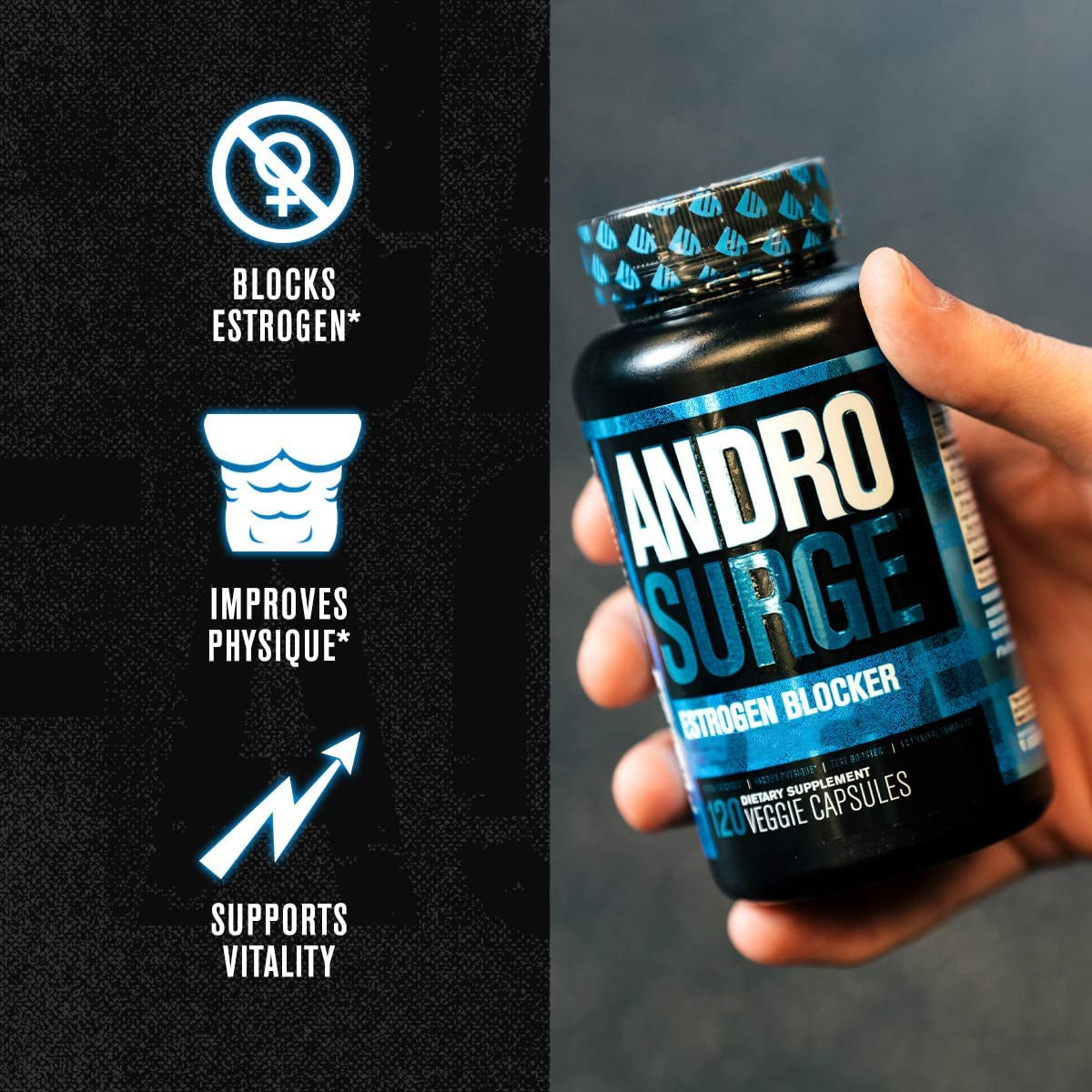 - Estrogen Blocker for Men: Jacked Factory Androsurge is a non-proprietary blend of all-natural ingredients designed to act as an estrogen blocker for men. Androsurge features researched ingredients such as long jack, grape seed extract, and diindolylmethane (DIM) which make it an effective estrogen blocker and testosterone booster for men.*