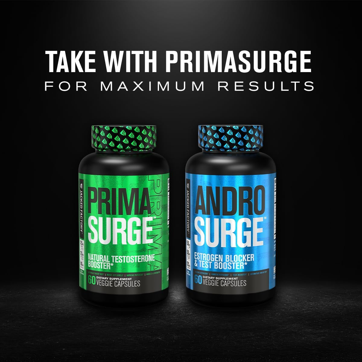 Jacked Factory Testosterone Booster for Men | Estrogen Blocker with Tongkat Ali - Androsurge Anti-Estrogen + Primasurge Natural Test Booster - for Muscle Growth, Vitality, Energy, 30 Day Supply