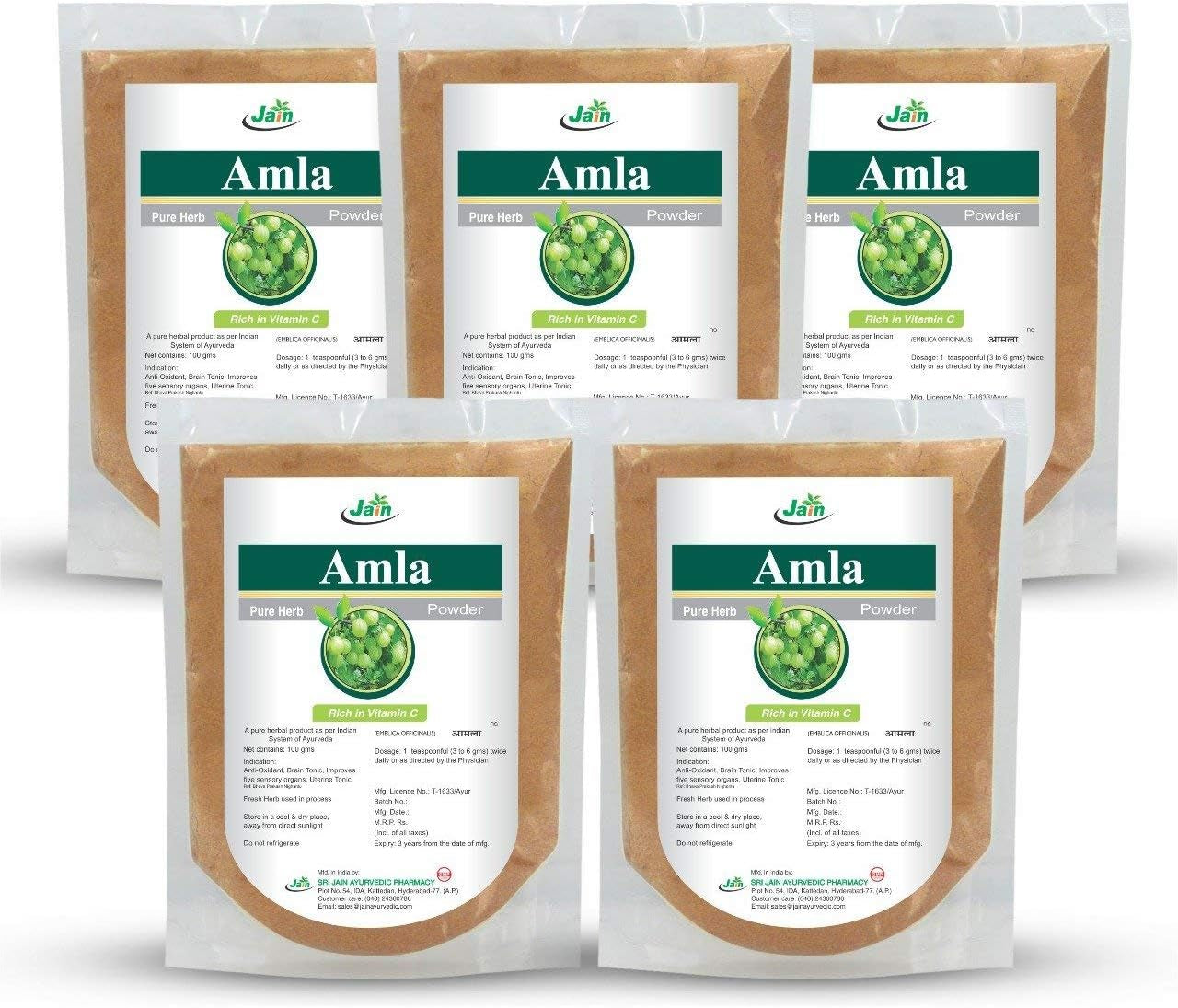 Jain'S Amla Powder 100 Gram (Pack of 5) - Indian Ayurveda'S Pure Natural Herbal Supplement Powder