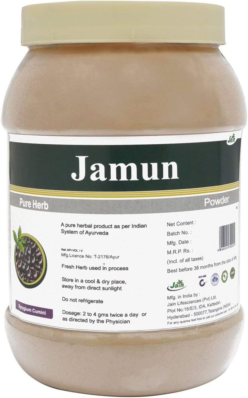 Jain'S Jamun (Syzygium Cumini) Powder - 500 Gram - Indian Ayurveda'S Pure Natural Herbal Supplement Powder