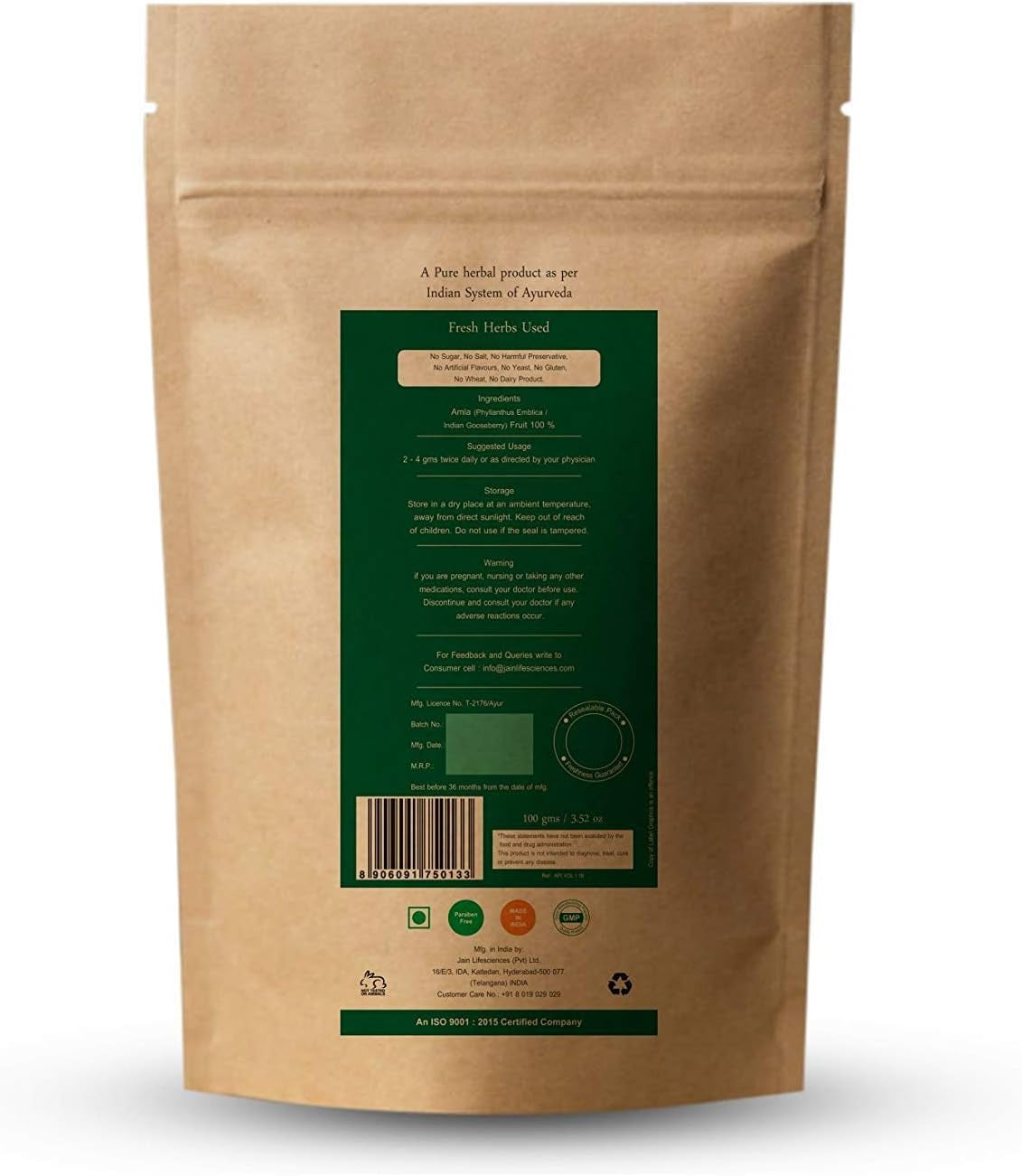 Jain'S Pure Amla Powder, 100 Gram - Indian Ayurveda'S Pure Natural Herbal Essential Supplement Powder