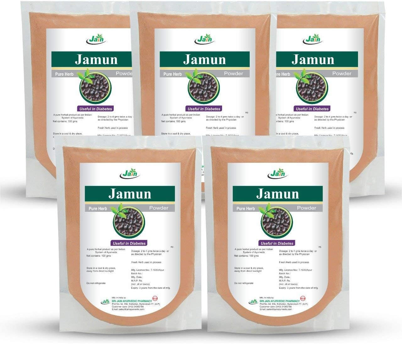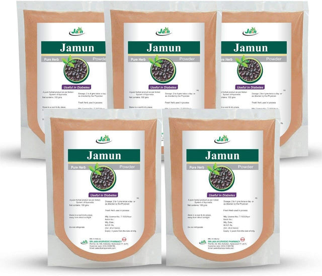 Jain'S Pure Jamun Powder - 50 Gram (Pack of 5) - Indian Ayurveda'S Pure Natural Herbal Supplement Powder