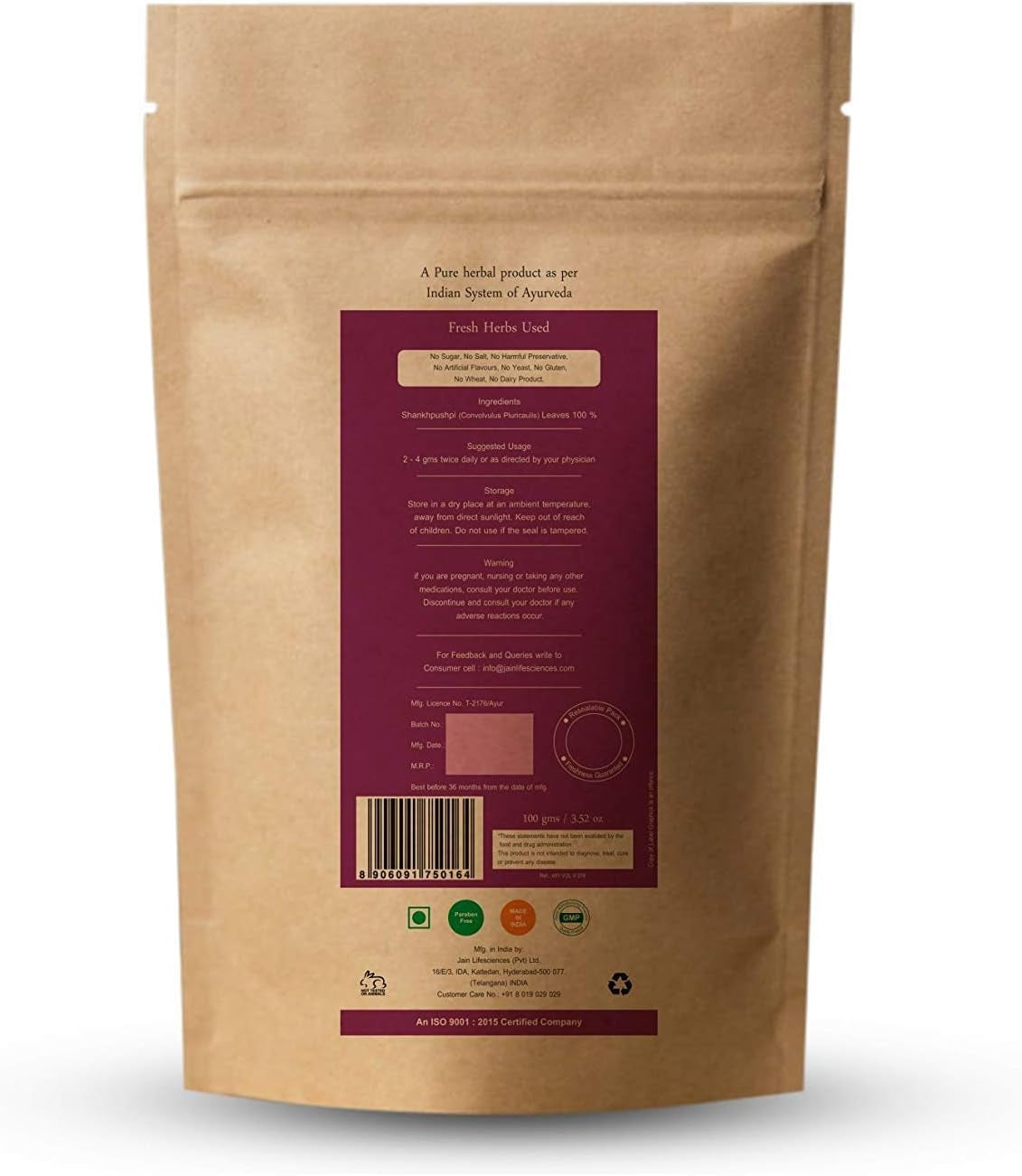 Jain'S Pure Shankhpushpi Convolvulus Pluricalis Powder, 100 Gram - Indian Ayurveda'S Pure Natural Herbal Essential Supplement Powder