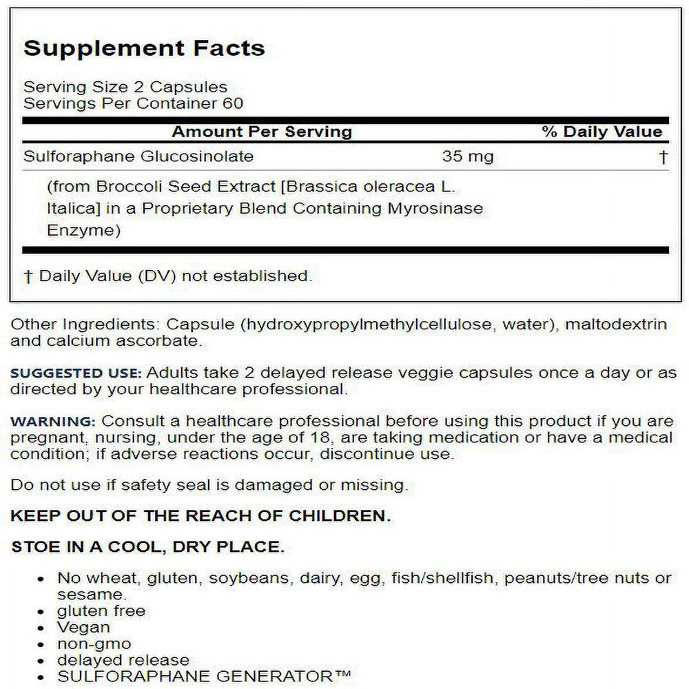 Sulforaphane is a potent inducer of Phase 2 detoxifying liver enzymes and helps protect cellular DNA as well as promotes healthy cell replication and liver health.*