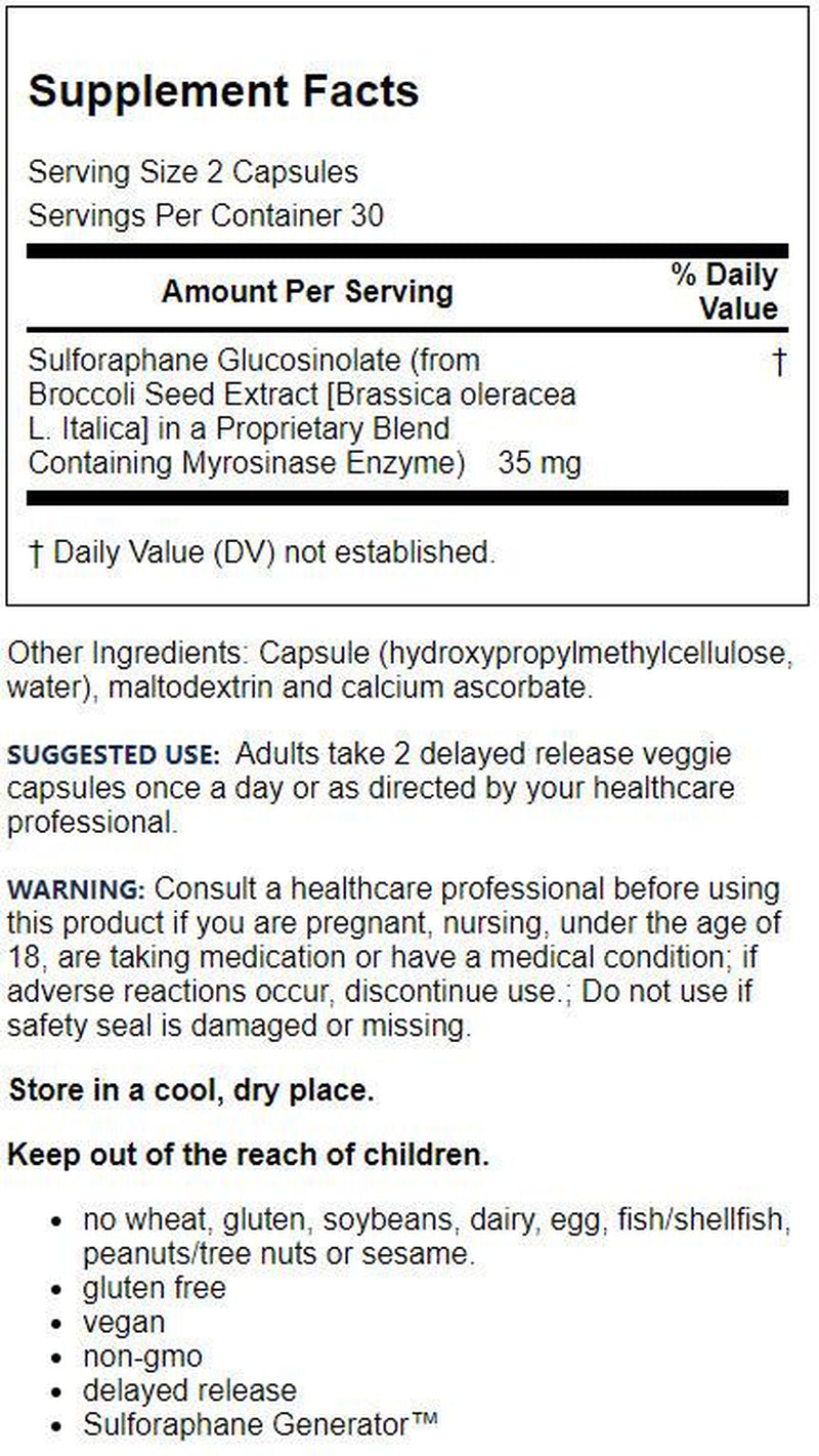Sulforaphane is a potent inducer of Phase 2 detoxifying liver enzymes and helps protect cellular DNA as well as promotes healthy cell replication and liver health.*