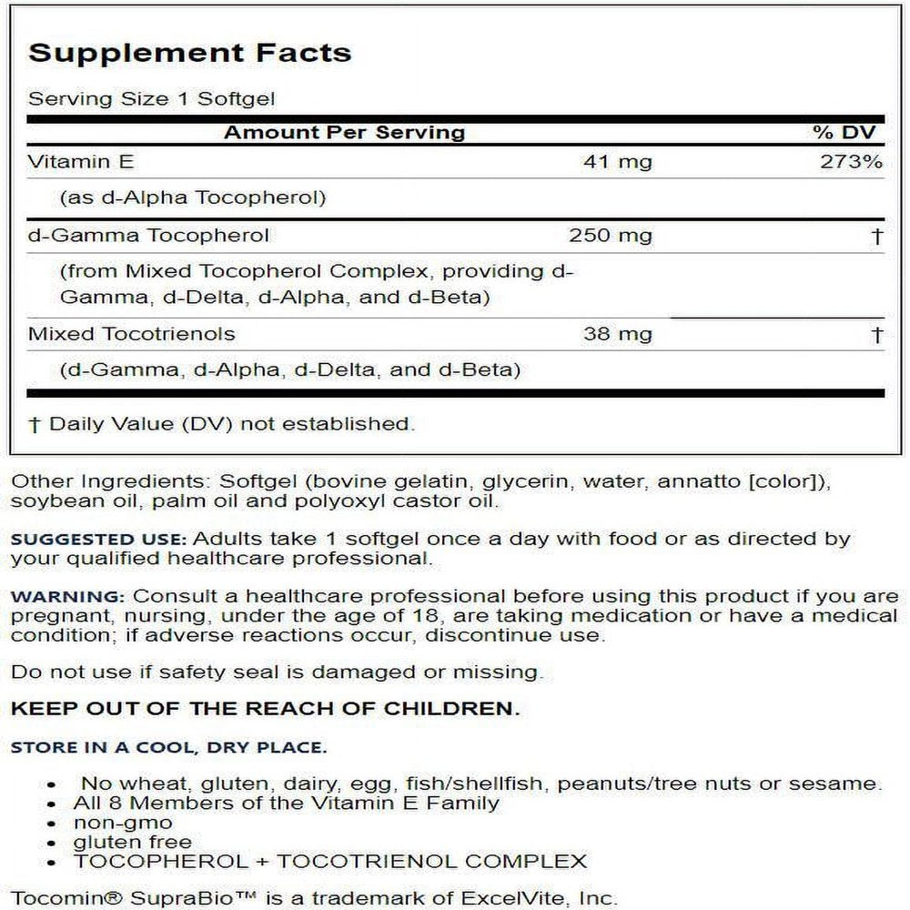 - Convenient Softgels - Each contains all 8 members of the vitamin E family; Adults take 1 softgel per day with a meal or as directed by your qualified healthcare professional
