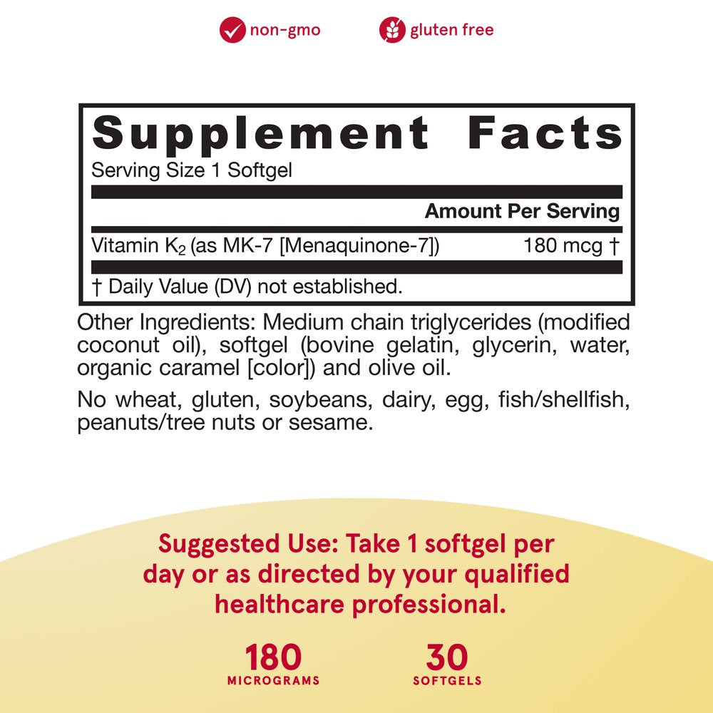 - Vitamin K2 Supplement: Each serving of Jarrow Formulas MK-7 provides 90 mcg of vitamin K2 per softgel, bone supplement for bone health*