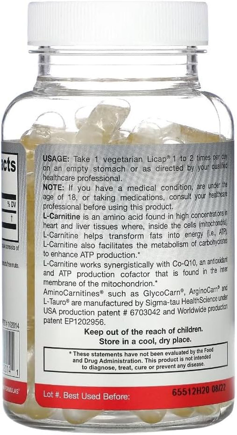 Jarrow Formulas L-Carnitine 500 Mg - 100 Veggie Licaps, Pack of 2