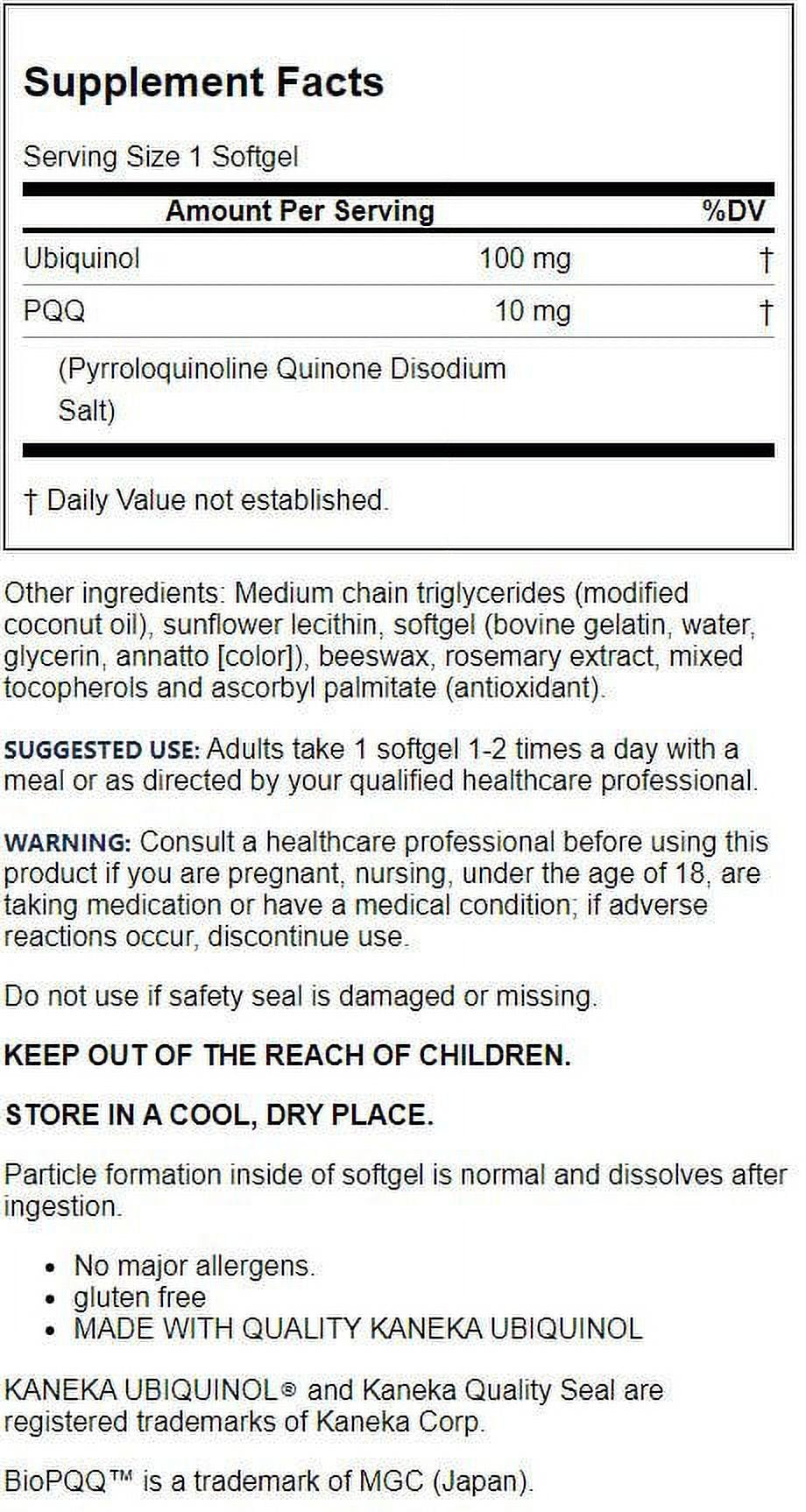 - PQQ Ubiquinol Softgels: Each Jarrow ubiquinol softgel provides 100 mg of ubiquinol and 10 mg of PQQ for dual antioxidant support *