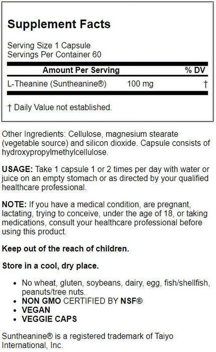 Theanine is a unique amino acid found almost exclusively in green tea that exerts beneficial effects on brain metabolism.* Theanine induces relaxation without causing drowsiness; as measured by increased generation of alpha-waves.* Theanine may improve learning ability and sensations of pleasure by affecting dopamine and serotonin neurotransmitters in the brain.* Also; theanine exerts protective effects on the brain by mitigating glutamate toxicity.*