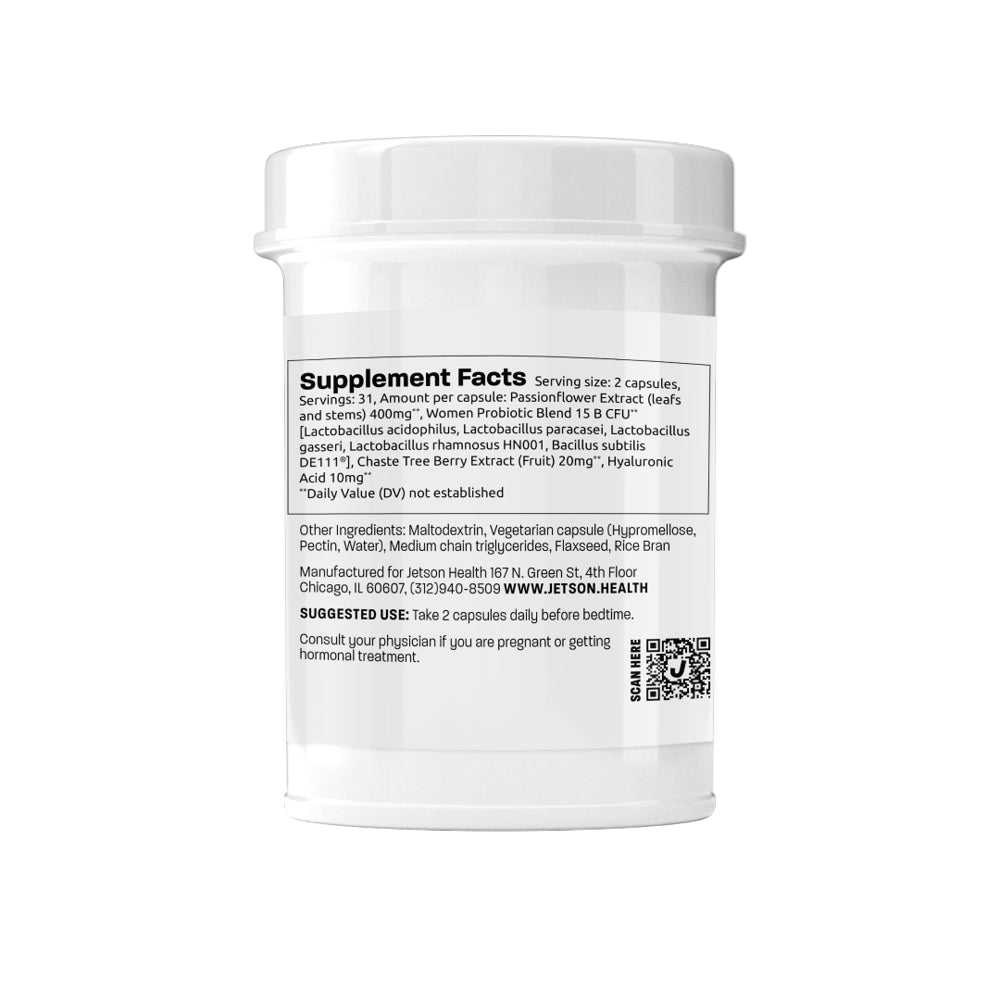 This probiotic formulation does not contain common allergens. Jetson’s OBGYN-formulated Women Probiotic contains 15 billion CFU of the following blend of probiotics: Bacillus subtilis DE111®, Lactobacillus acidophilus, Lactobacillus rhamnosus, Lactobacillus paracasei, Lactobacillus gasseri. Additionally, Women contains 400mg of Passionflower Extract, 20mg of Chaste Tree Berry Extract, and 10mg of Hyaluronic Acid. All Jetson Health formulations are tested for purity and potency. Our Jetson Women probiotic blend is developed with delayed-release capsule technology to make sure the probiotics survive and make it into your gut.