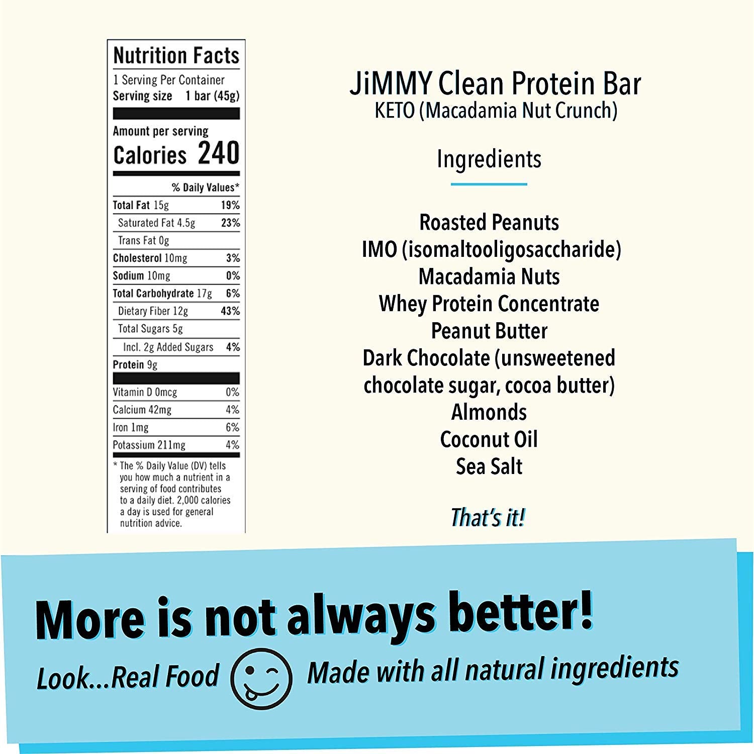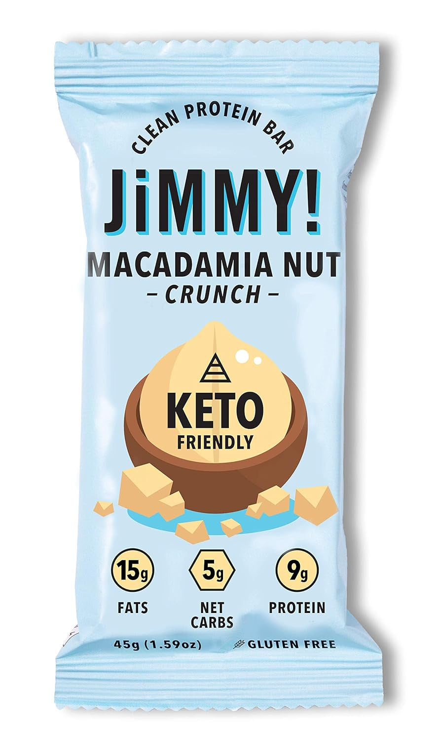 Jimmy! Keto Bar, Delicious Protein Snack for Keto Diet, High Fats - 15G Fat, Low Carb - 5G Net Carbs, 9G Protein, Gluten Free, Macadamia Nut Crunch - with Coconut Oil and Sea Salt, Single Sample Bar is backordered and will ship as soon as it is back in stock.