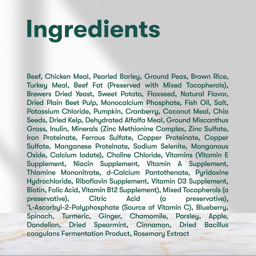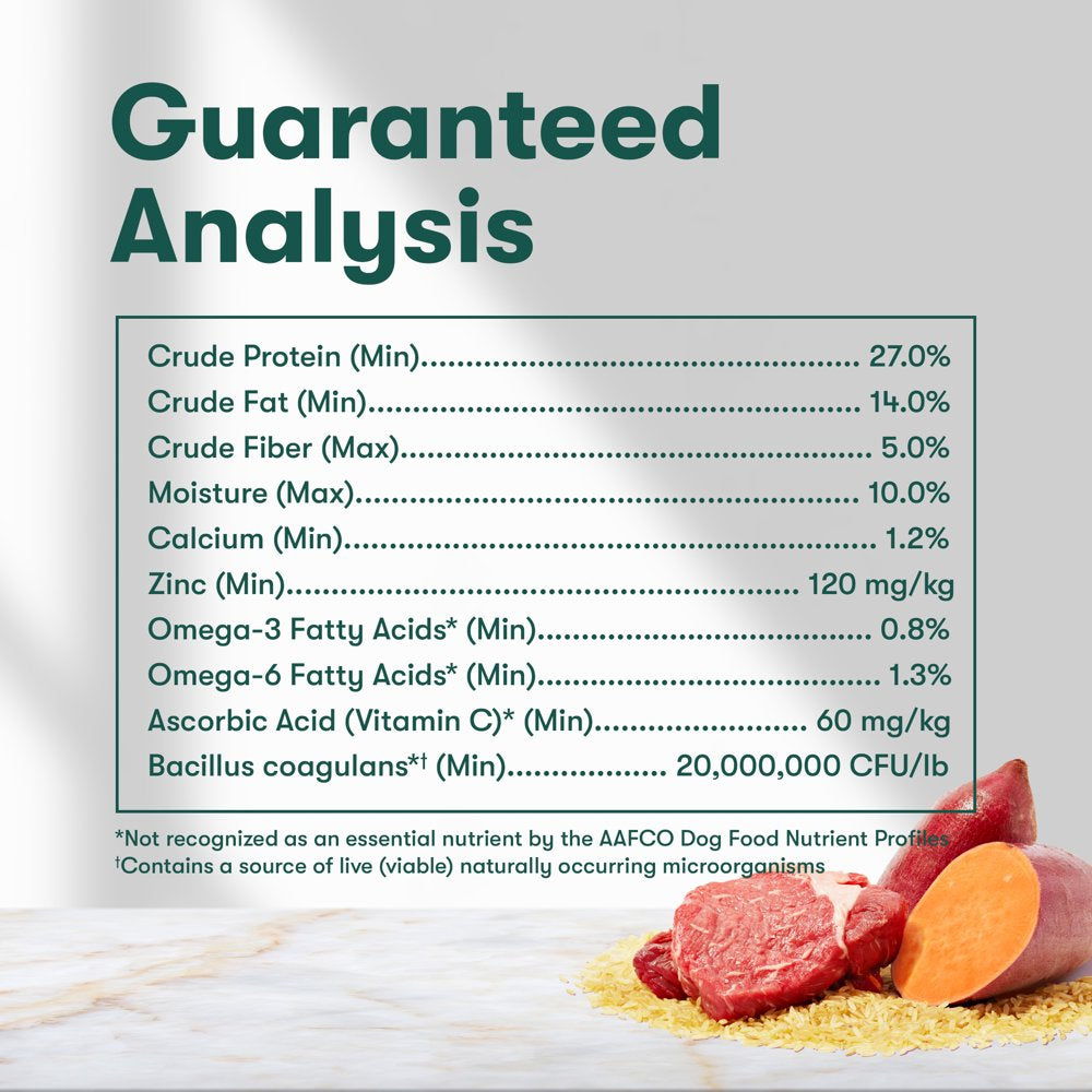 | Pet Food Flavor | Beef, Brown Rice, Sweet Potato |