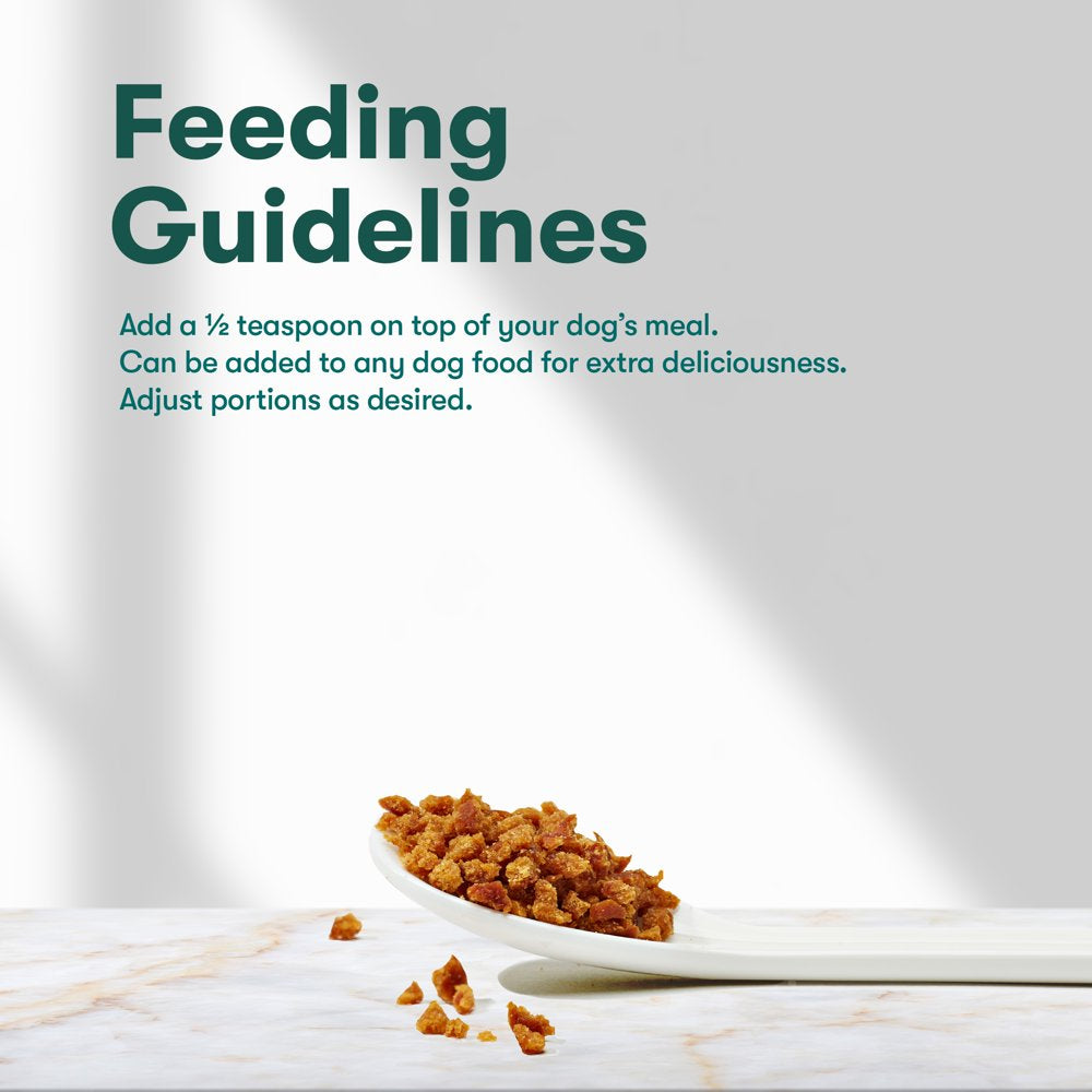 Treat your picky pup to Jinx Crumbles Chicken Recipe Meal Topper. Add an irresistible boost of slow-cooked flavor to your dog’s food with our limited ingredient, natural meal toppers made with real, hearty chicken and vitamin-rich sweet potato. Just a sprinkle will have even the pickiest of pups licking their bowls clean. Jinx Crumbles Chicken Recipe Meal Topper can be added to any dog food and is designed for dogs of all ages, breeds, and sizes.
