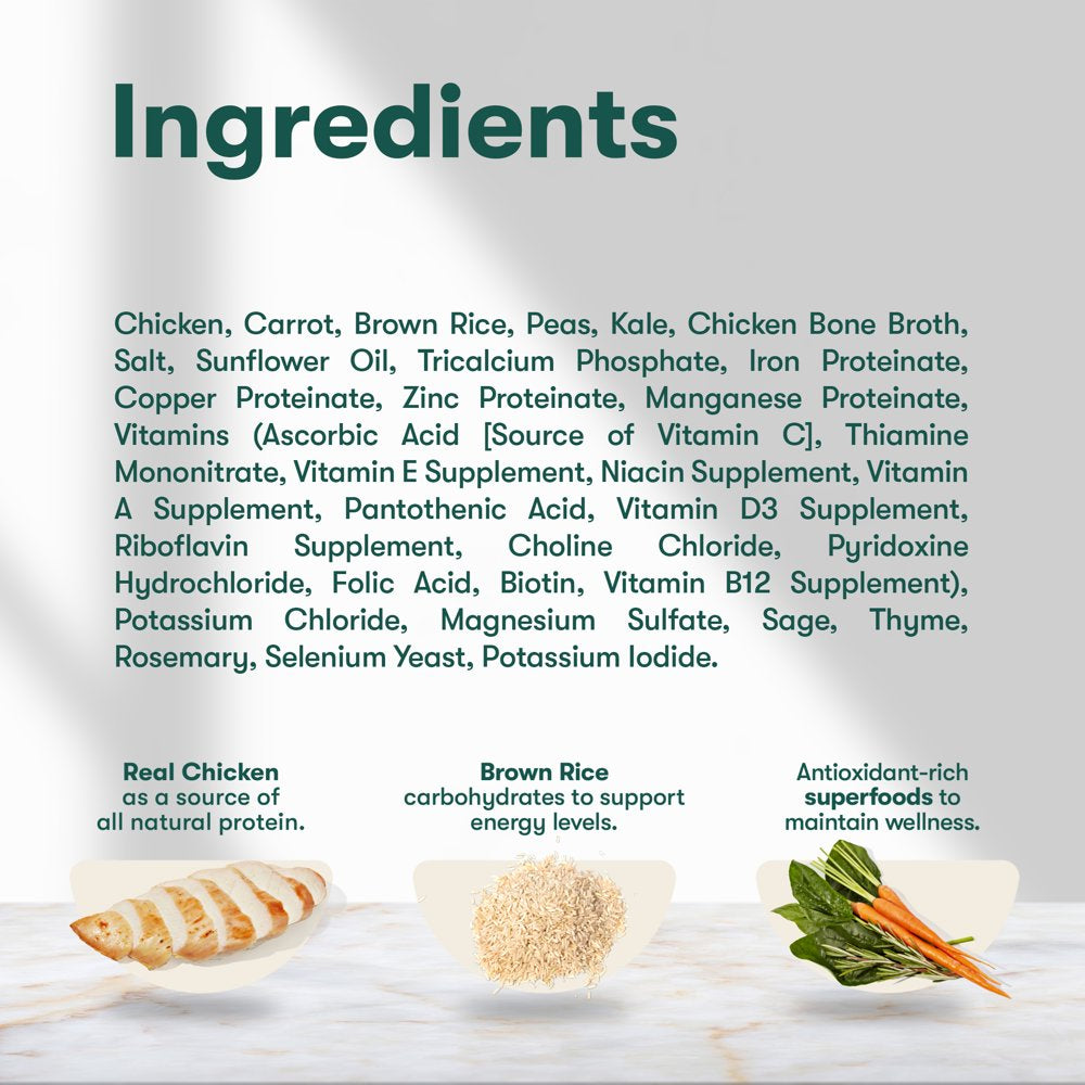 Treat your dog to the taste of a home-cooked meal with Jinx Homemades Beef & Chicken Recipe Wet Natural Dog Food. Packed with flavor and nutrients from natural ingredients like real chicken, carrots, brown rice, kale and real chicken bone broth, Jinx Homemades provide a whole, balanced diet for adult dogs of any breed or size. Use as a flavorful and nutrient-packed addition to any diet or serve as a complete and balanced meal for your adult dog.