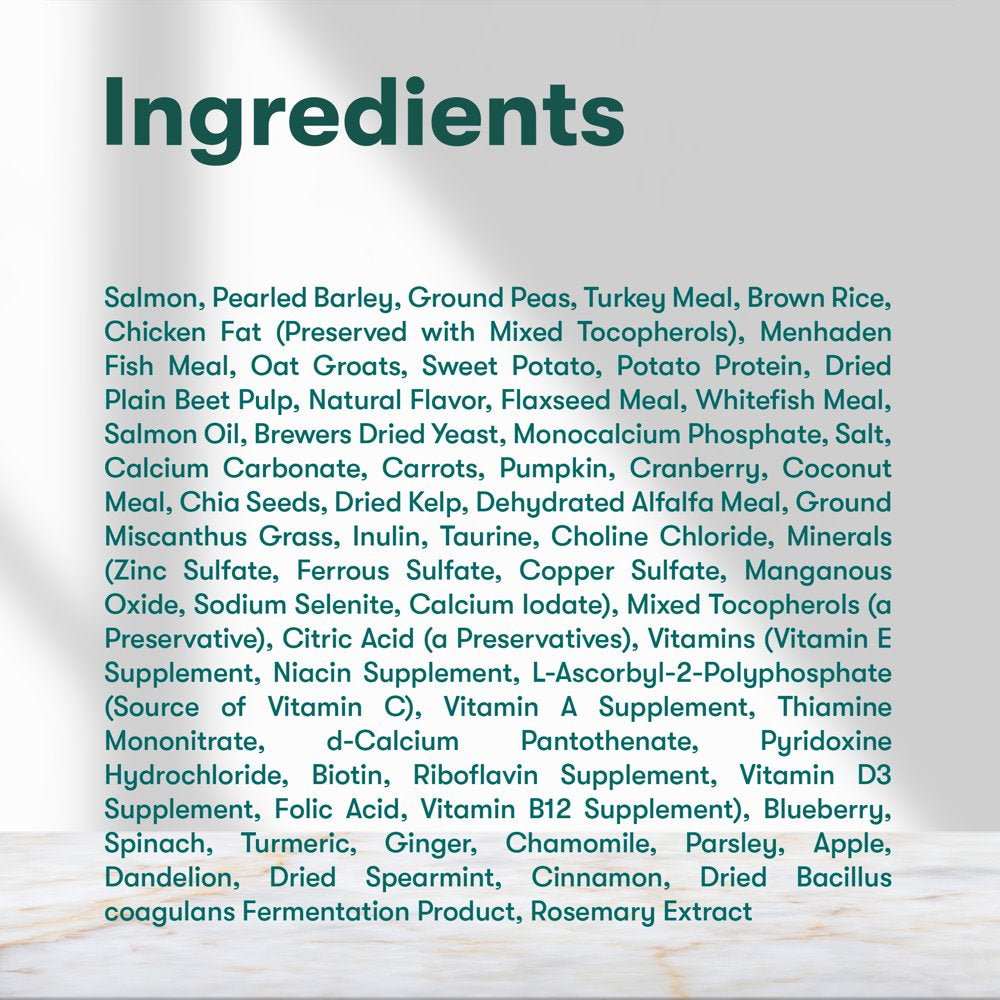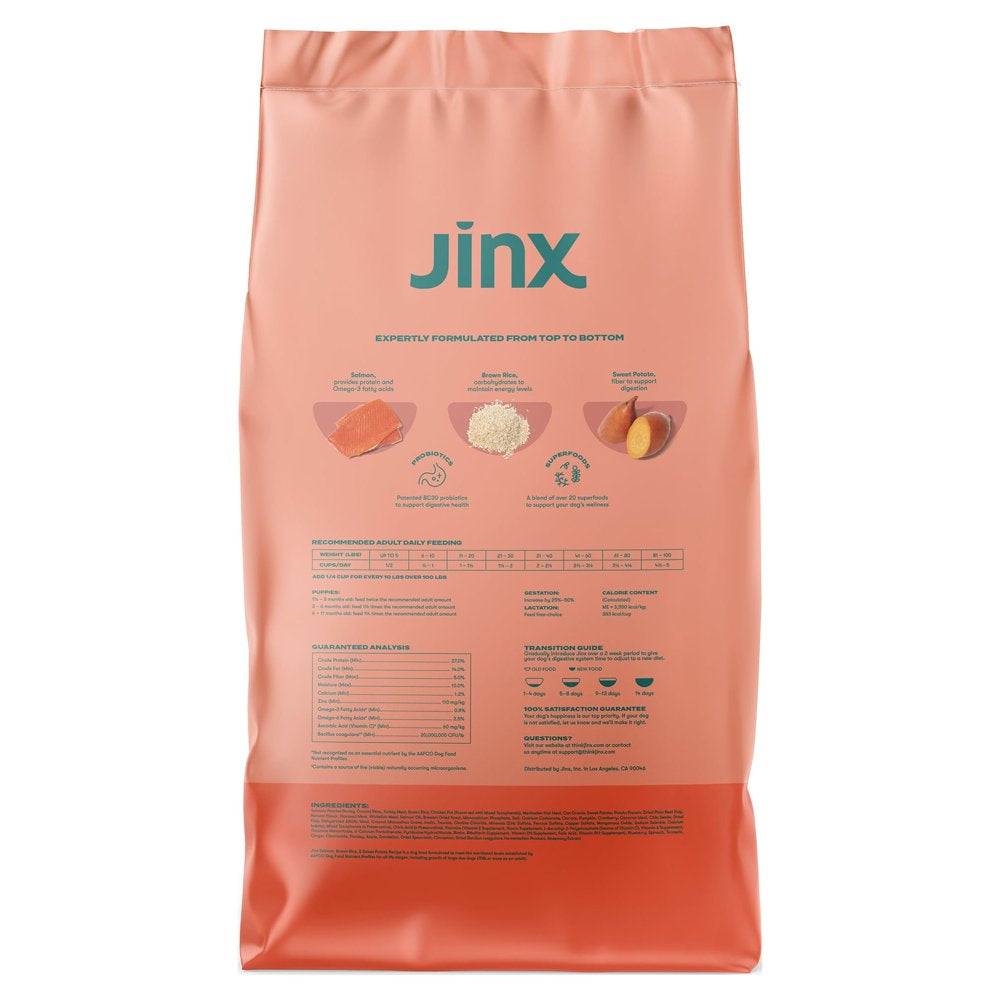 Real salmon is the #1 ingredient in our Jinx Salmon Recipe Natural Whole Grain Dry Dog Food. Made with high quality protein to promote healthy joints and muscles and essential vitamins, whole grains for sustained energy and healthy digestion, and minerals to support your dog’s overall brain, immune and heart function. Our Jinx Salmon Recipe is formulated by experts to ensure your dog maintains a strong foundation of health — with a great taste that can only come from using real, high quality ingredients. You’ll see the Jinx difference in a shiny coat, bright eyes, healthy teeth and gums, and improved digestion. Every bag of Jinx comes with our promise to never use artificial ingredients or fillers like corn, wheat, soy or animal byproducts. Created for dogs of all ages, breeds and sizes.