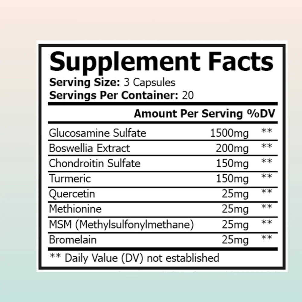 - Premium Ingredients: Glucosamine Sulfate, Boswellia Extract, Chondroitin Sulfate