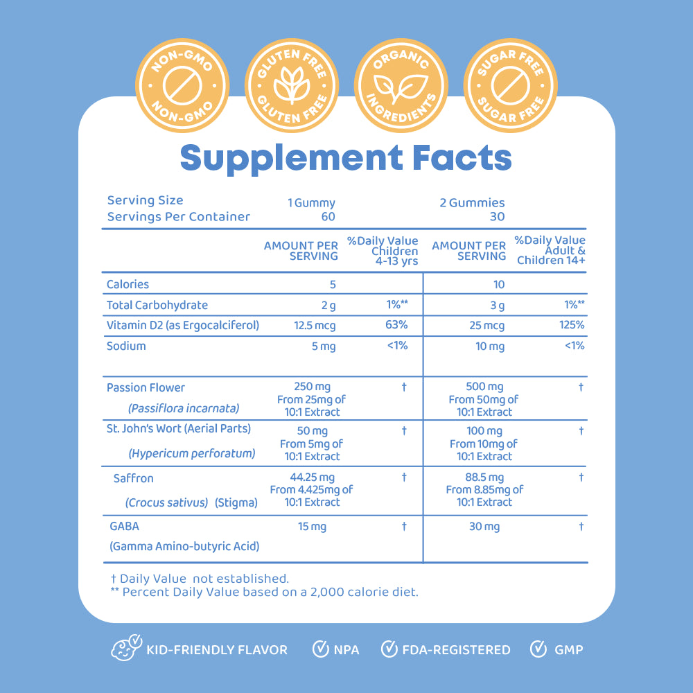 - A mood booster power house - Mood munchies is more than a saffron supplement. These sugar free delicious berry flavored saffron supplements for kids also contain passionflower, Gaba, & St Johns Wart which may aid in occasional restlessness.