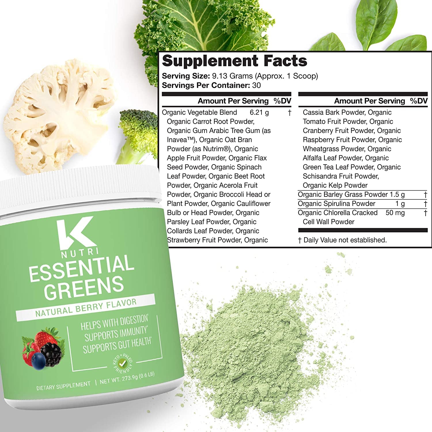 K Nutri Supergreens [30 Servings] Organic Superfood Powder - Fruit & Vegetable Blend Helps Detox, Immunity, Digestion, Energy, Gut Health - Naturally Flavored & Sweetened - Greens Supplements is backordered and will ship as soon as it is back in stock.