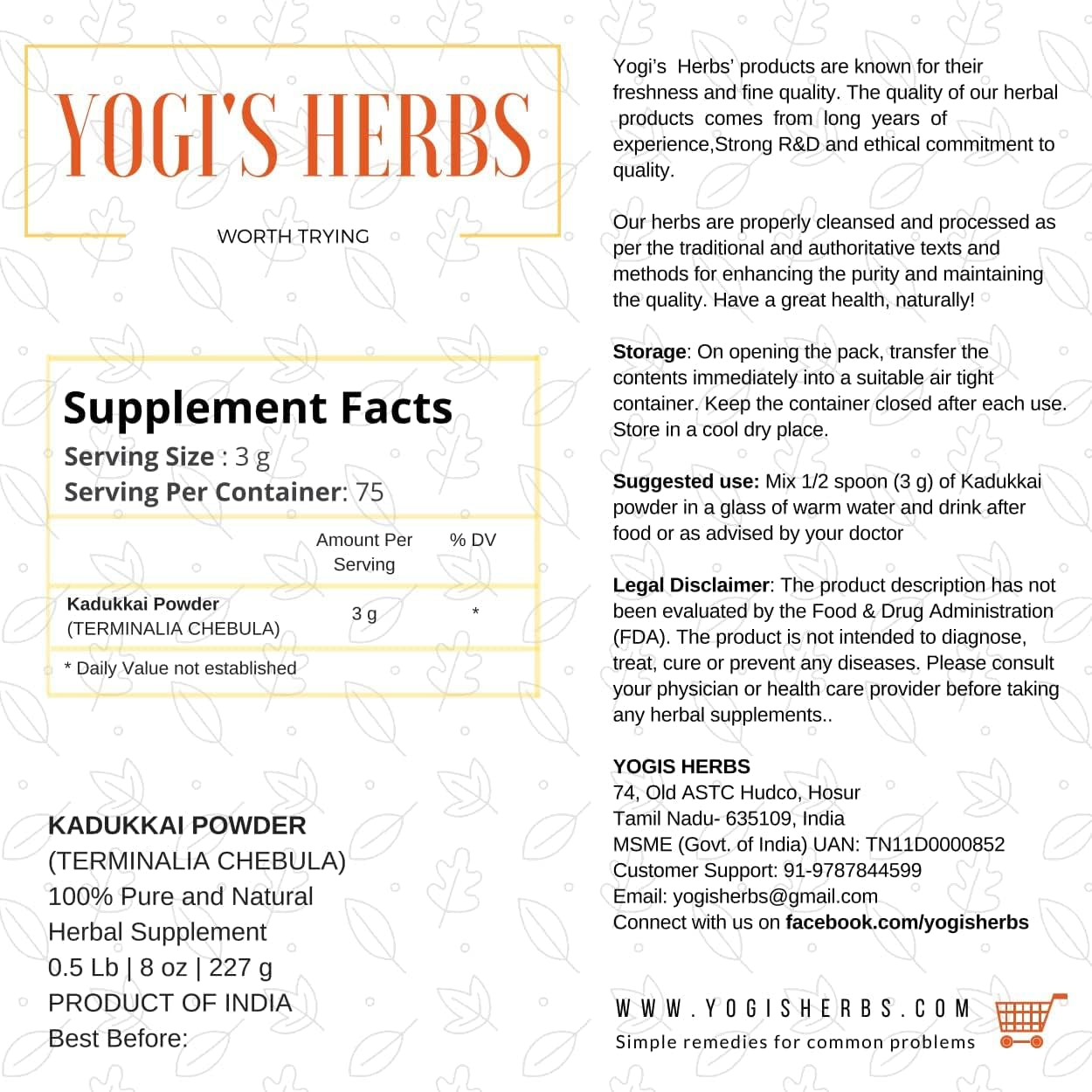 KADUKKAI Powder (Terminalia Chebula/Haritaki) – Fresh & Pure (1/2 Lb, 8 Oz) - 8 Ounce (Pack Of 1) is backordered and will ship as soon as it is back in stock.