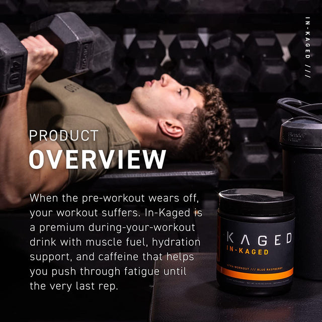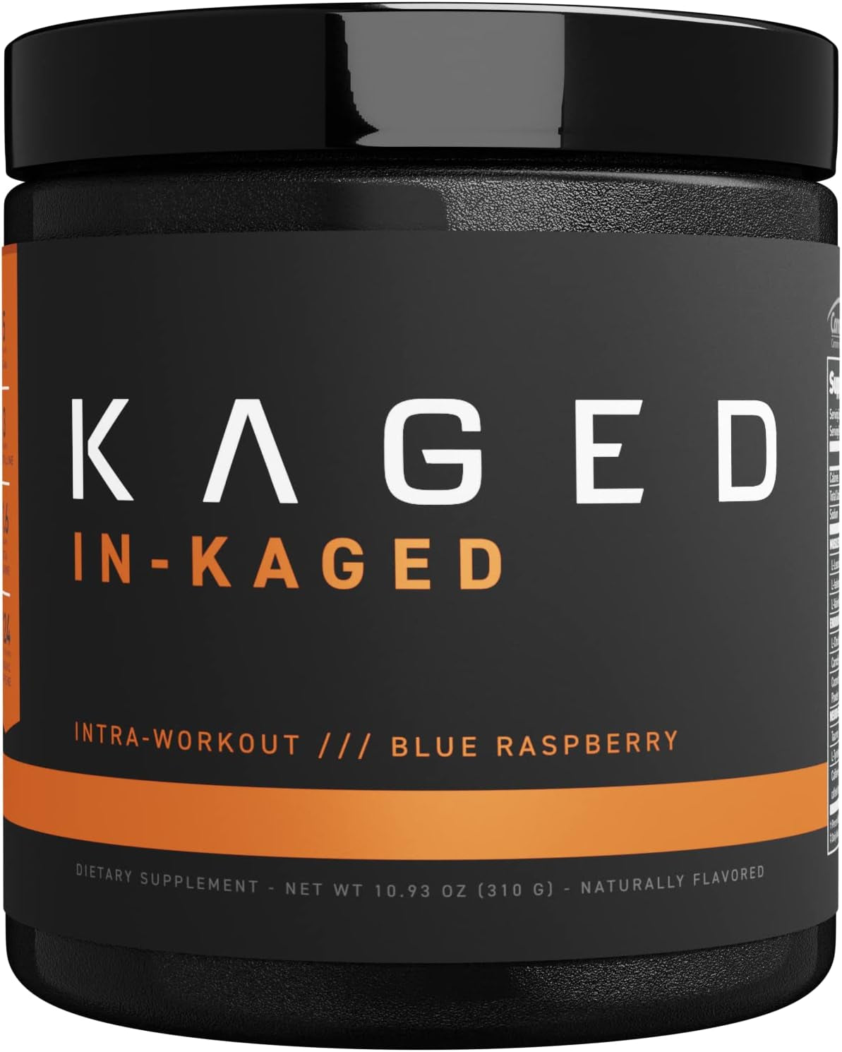 Kaged Intra Workout BCAA Powder | Blue Raspberry | In-Kaged | Intra Workout Carbs | Energy Drink for Weights & Cardio | Amino Acids to Boost Protein Synthesis | 20 Servings