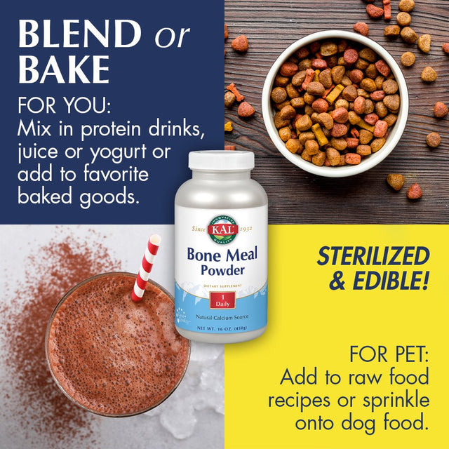 KAL Bone Meal Powder | Sterilized & Edible Supplement Rich in Calcium, Phosphorus, Magnesium | for Bones, Teeth, Nerves, Muscular Function (16Oz) - 16Oz is backordered and will ship as soon as it is back in stock.