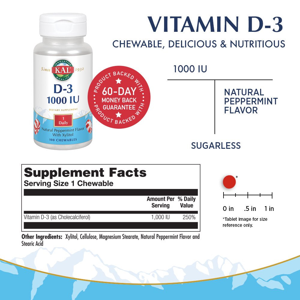 - Conveniently Strong: 1000 IU or 250% RDI of Vitamin D-3 per chewable