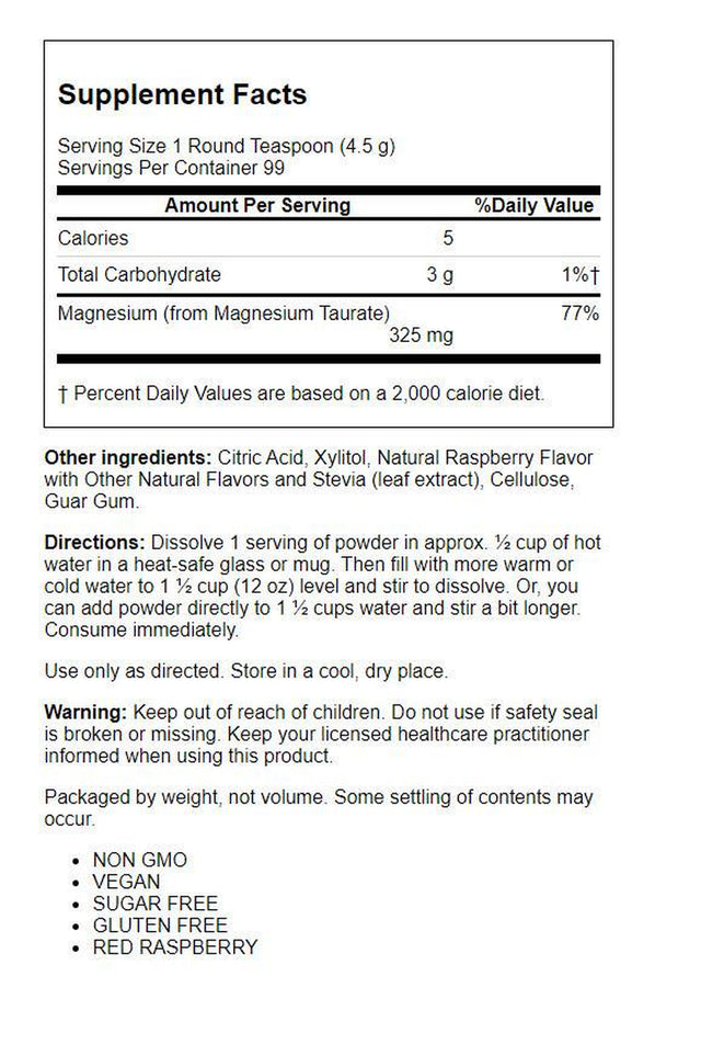 - Your Heart Health Supplement: Each easy-to-mix, 1-teaspoon serving of Heart Magnesium provides 325 mg of magnesium from magnesium taurate, a bioavailable, chelated magnesium specifically designed to help support heart health.