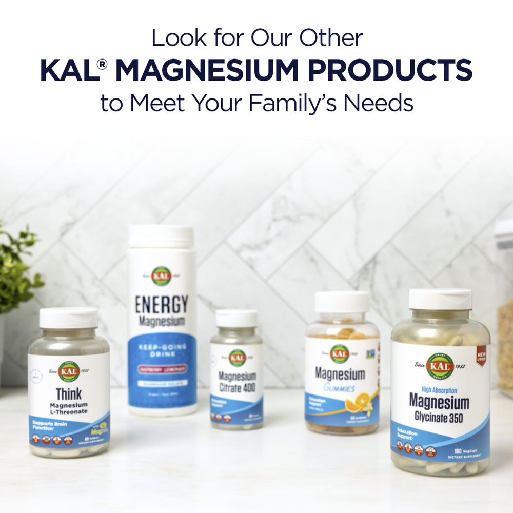 KAL Magnesium Glycinate is non-GMO, gluten free and made without soy. Like all KAL supplements, it’s lab verified for purity and potency and comes with our standard 60-day money-back guarantee. Confidence in the KAL name is just one of the reasons we’ve been around so long and maintain our place as a leader in the industry. Unlike many other companies, we manufacture almost all our own products in Utah, USA, which gives us the ability to thoroughly test and screen raw ingredients for the slightest amount of impurities and manage the production process to provide the best possible quality. Rest assured, only the purest formulas ever reach your cabinet.