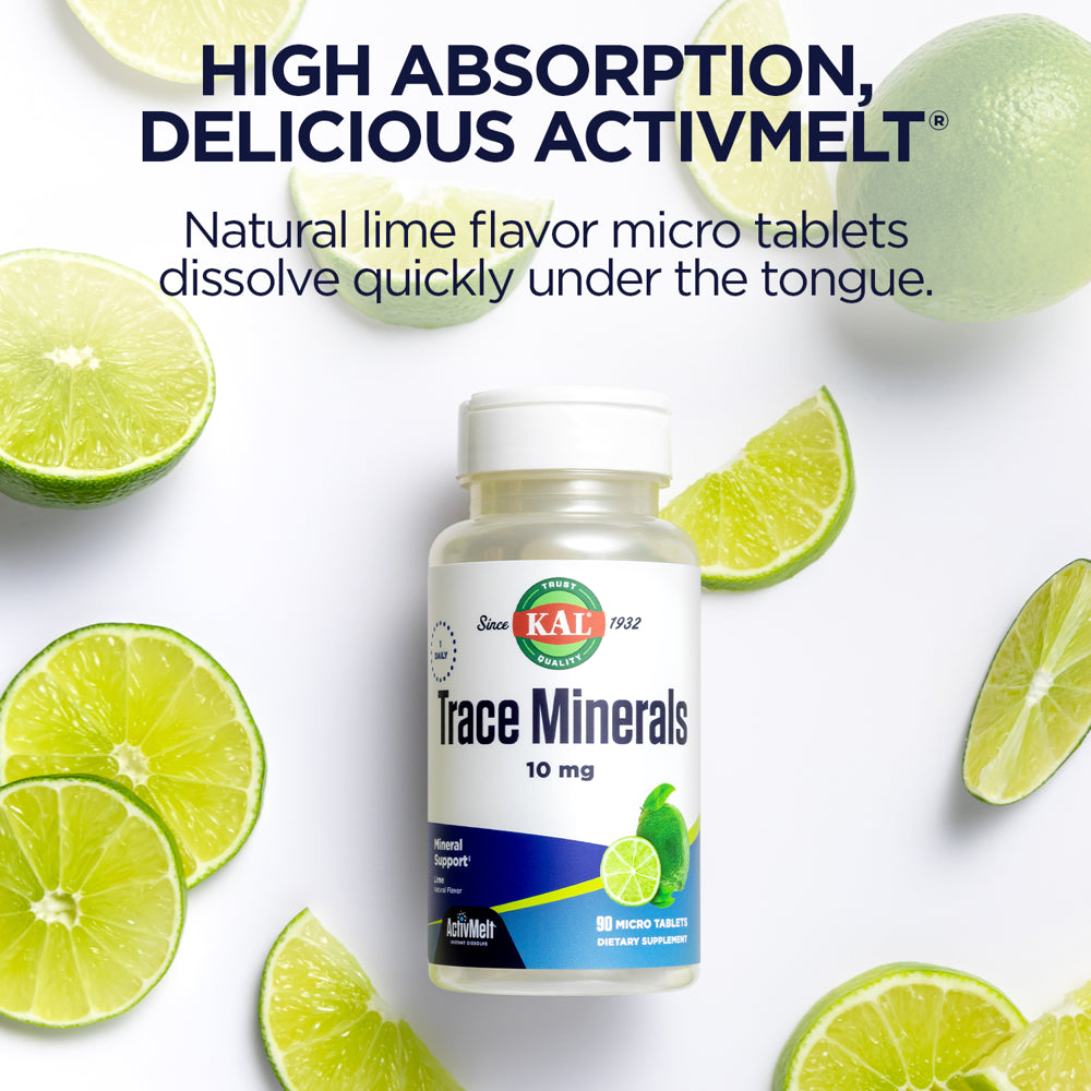 KAL Trace Minerals, 10 Mg Mineral Supplements, Natural Lime Flavor Trace Minerals Supplements, Instant Dissolve Activmelt Tablets for Optimal Trace Mineral Absorption, 90 Servings, 90 Micro Tablets