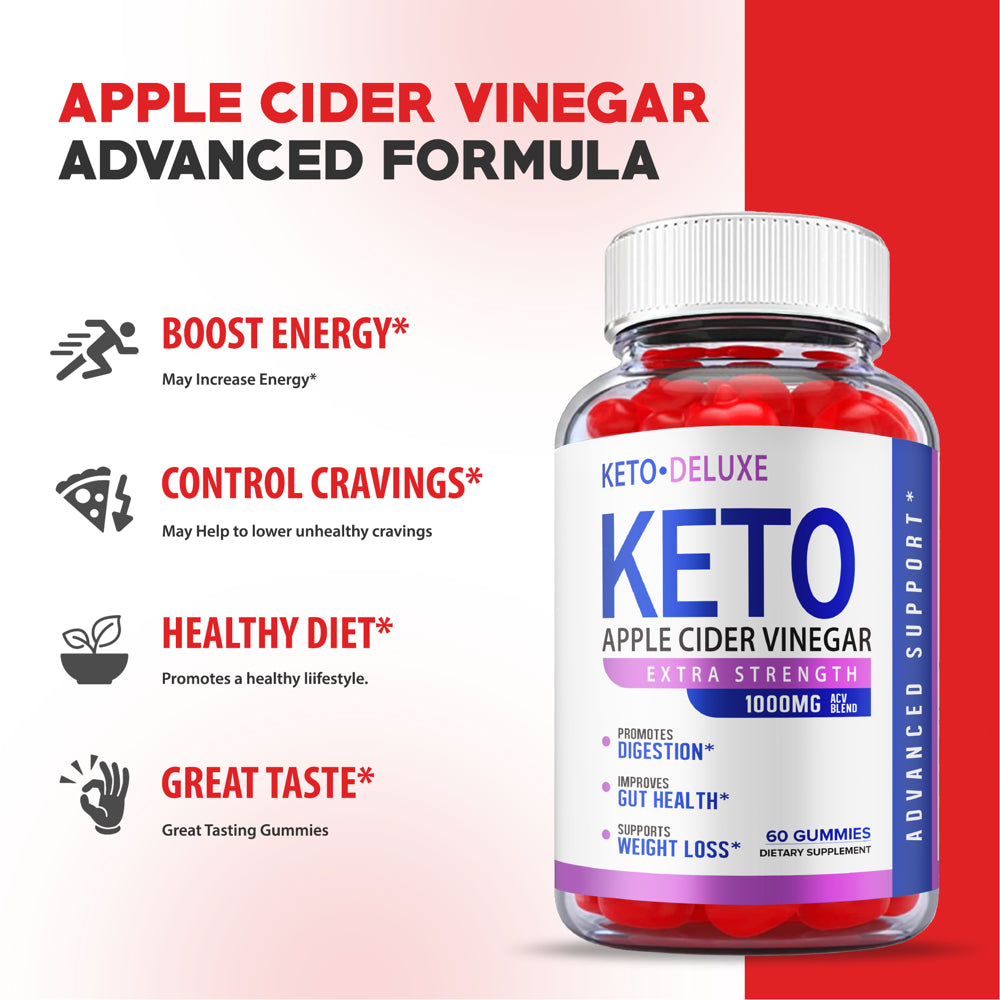 - Great Taste: Deluxe Keto gummies plus apple cider vinegar gummies has all of the benefits of apple cider vinegar keto gummies without the downside of drinking Keto Deluxe plus gummies with apple cider vinegar are easy to take, and an excellent way to incorporate apple cider vinegar into your daily life for Keto Deluxe acv gummies reviews.