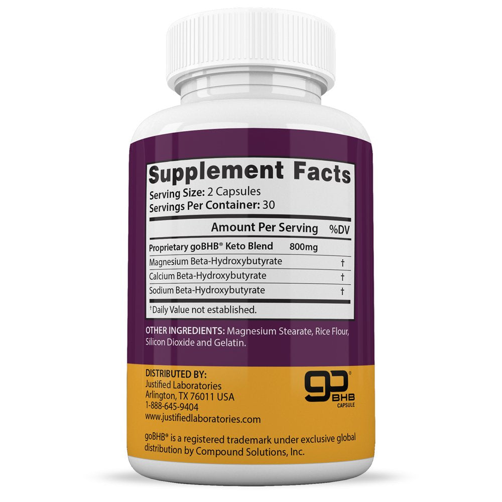- Justified Laboratories Keto Pills includes goBHB and has a potency of 800mg.