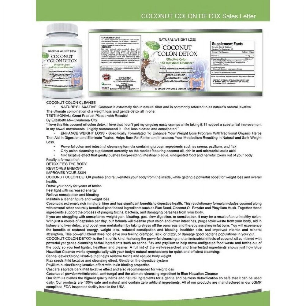 Rid your body of harmful toxins and help achieve your weight-loss goals with these coconut-based colon cleanse capsules. Supplemented with traditional organic herbs, this bottle of 60 colon capsules aids in digestion and eliminates toxins and harmful bacteria from your body. These capsules contain beneficial plant-based ingredients such as flax seed and psyllium husk.