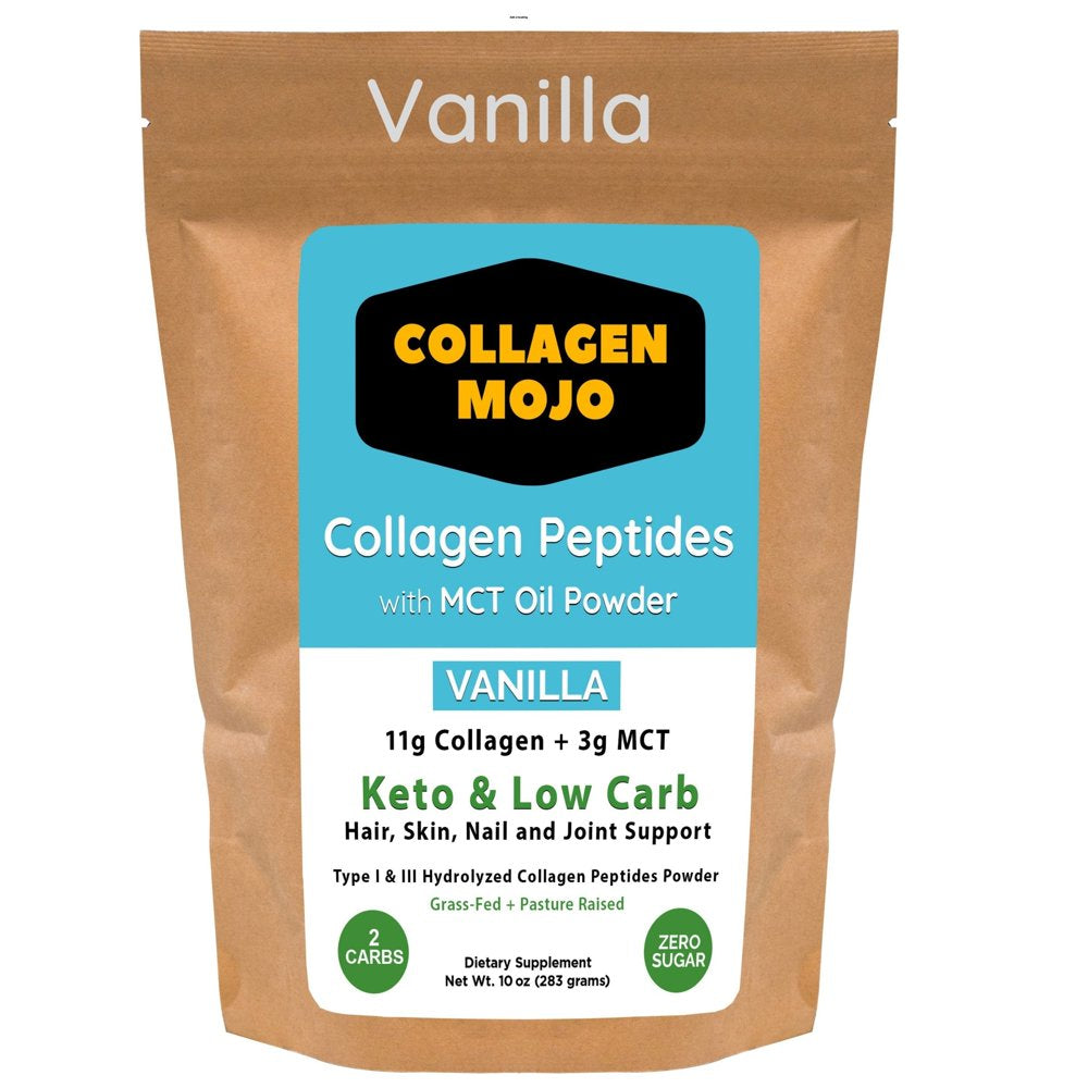 Keto Collagen Mojo Peptides Powder with MCT Oil - Creamer for Coffee, Shakes & Snacks - Pre & Post Workout - Curb Cravings - Promote Weight Loss - Hair, Skin, Nail & Joint Supplement - Vanilla